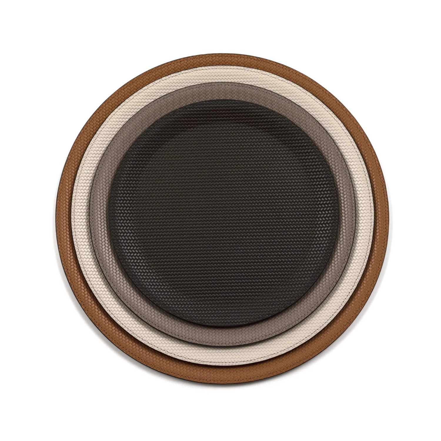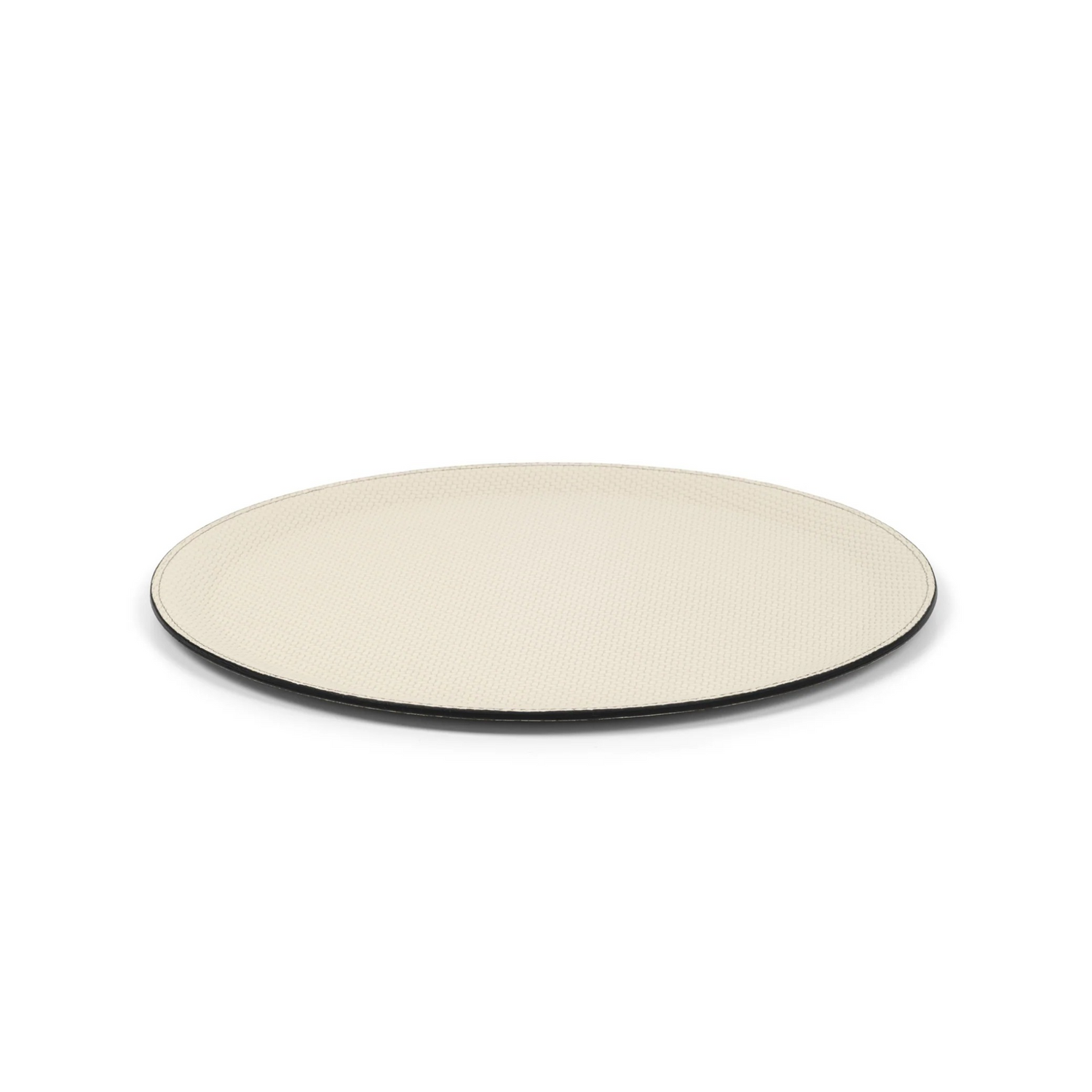 The essential design of our Victor round tray made with waterproof and scratch calf skin leather with non-slip base. A family of four different sizes to suit any special occasion. These trays are also available in different colors and leathers - please ask the concierge for details.