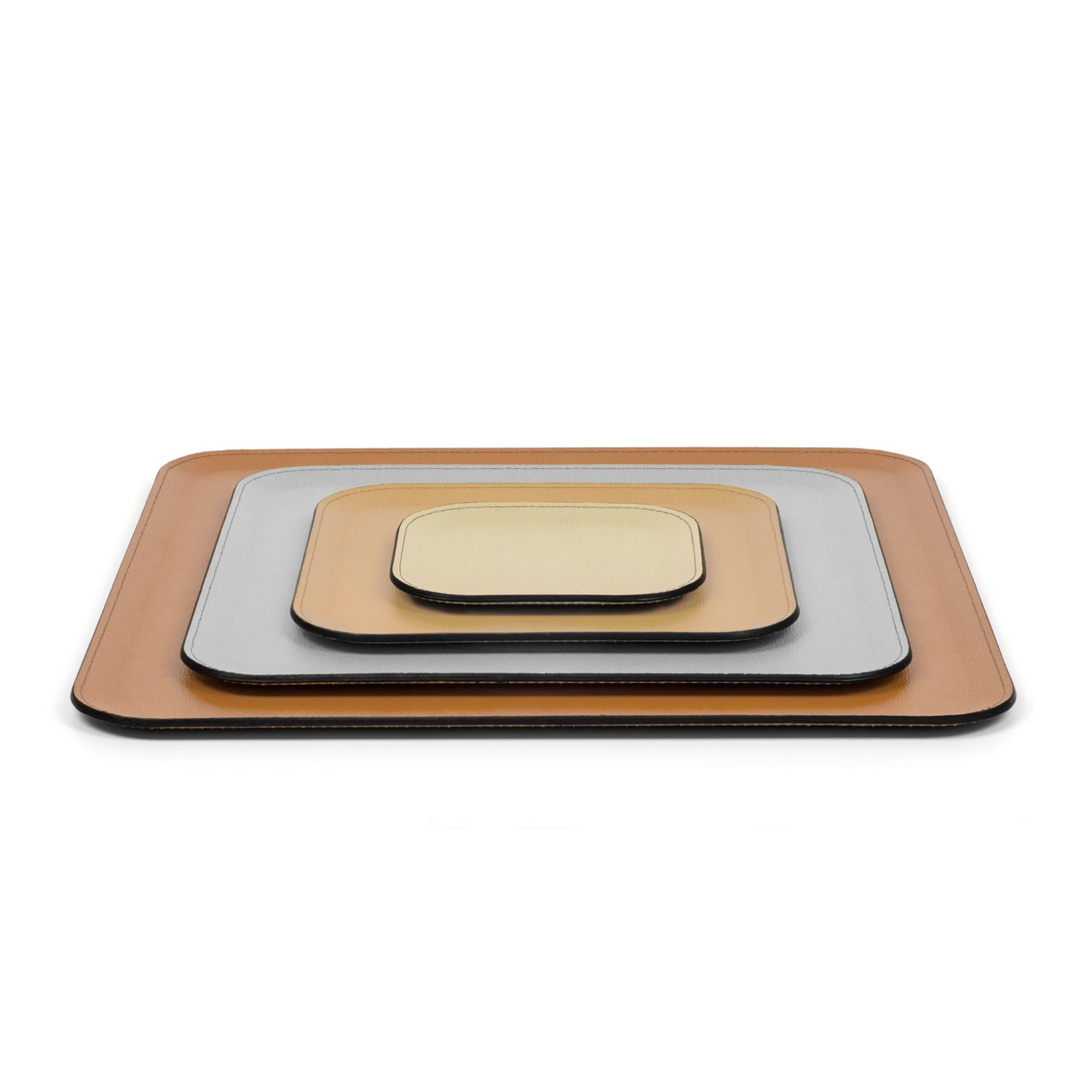 Minimal is more. The square structure with round corners is covered with soft hand-stitched calfskin leather. Available in 4 different sizes, our new Victor tray has a non-slip base with a waterproof and scratch resistant surface. Do not hesitate to contact us for further color combinations!