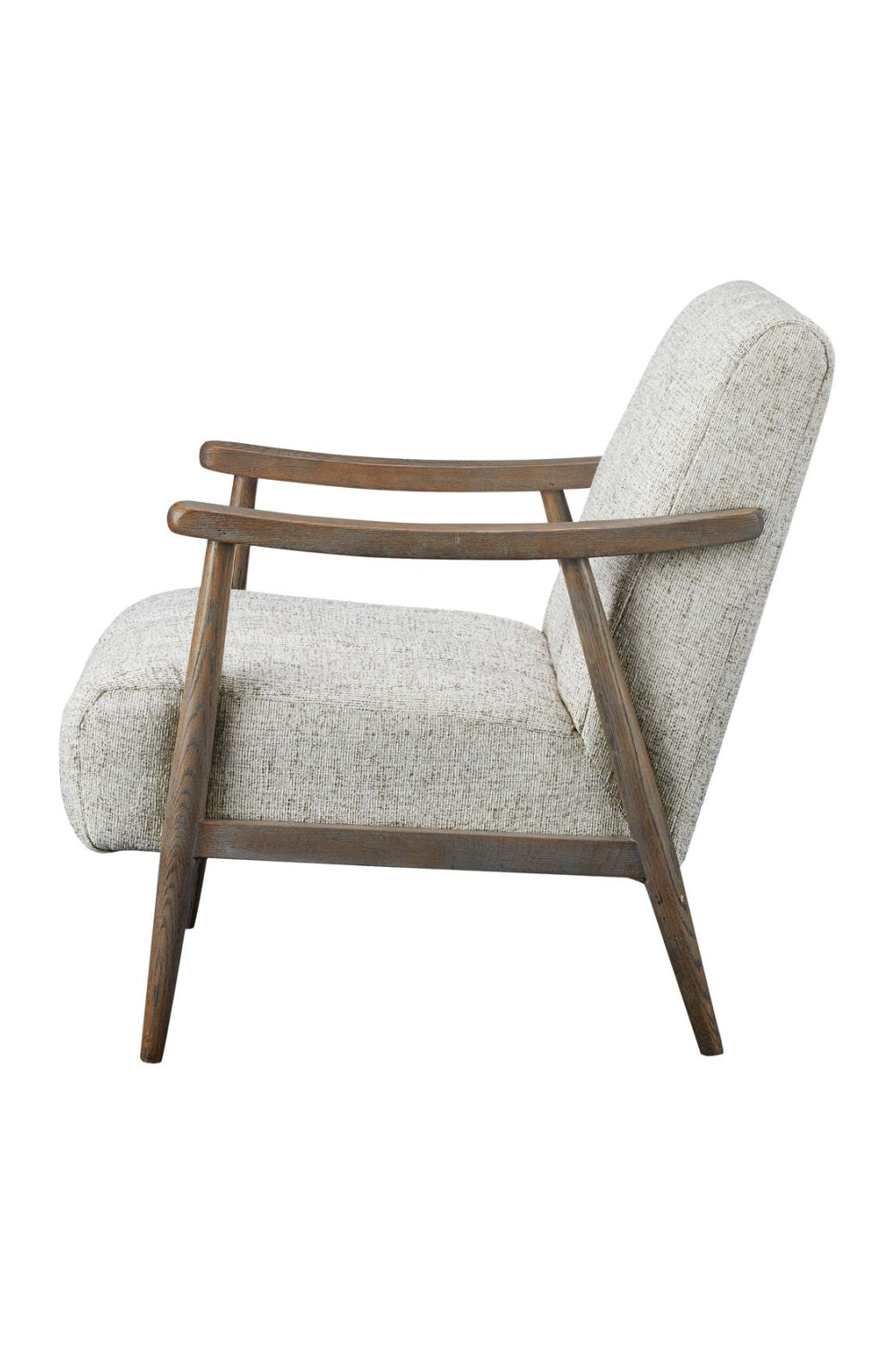 The Aster accent chair brings Mid-century inspiration and a rustic charm with a solid oak frame in an aged brown finish. Its channel detailing and textured upholstery in neutral tones add depth and visual appeal, while its timeless silhouette and meticulous craftsmanship add warmth to any space.