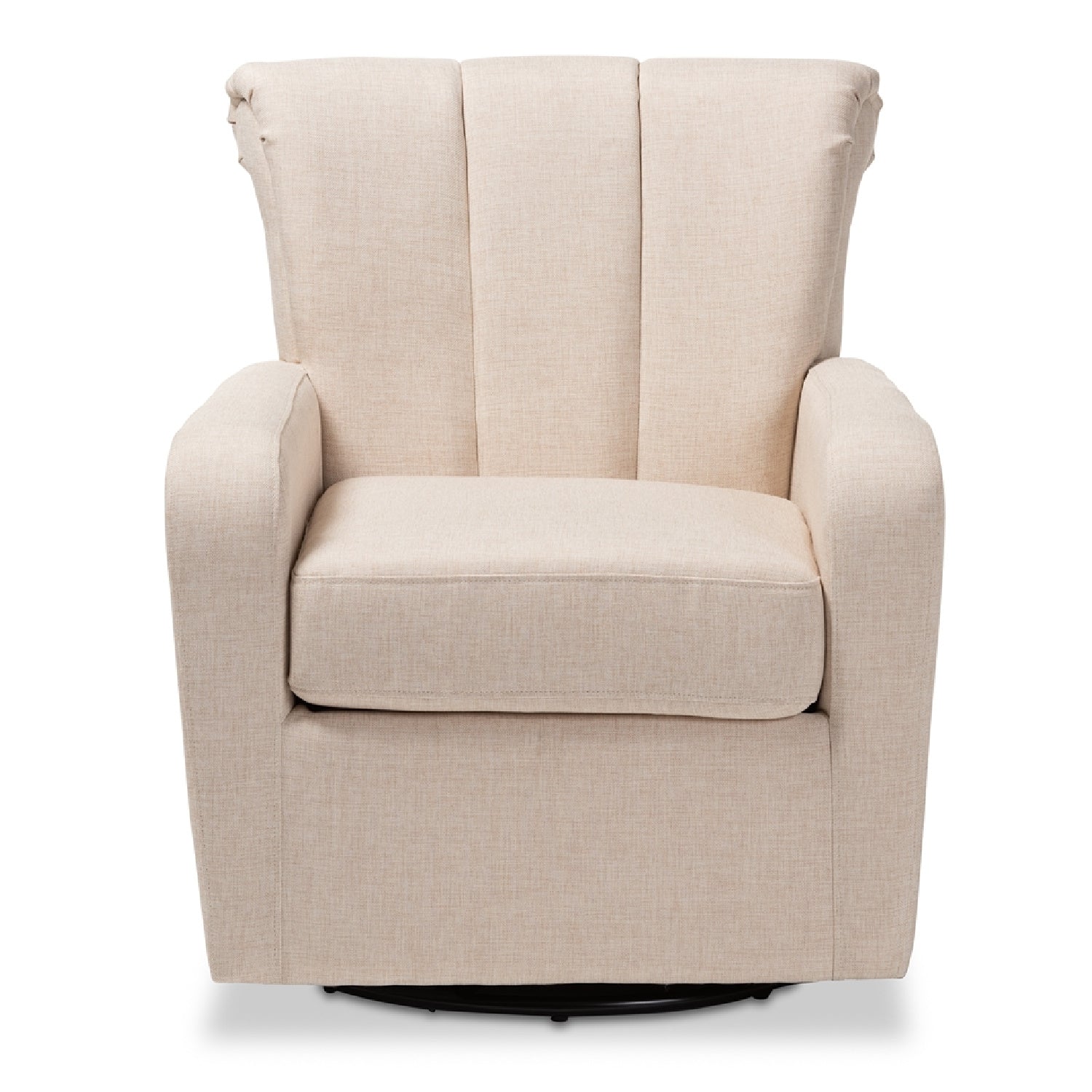 Create a cozy nook in your space with the Rayner swivel chair. Constructed from plywood, the Rayner is upholstered in a classic neutral fabric, boasting a soft texture, as well as resistance to wear and tear. The chair is fitted with a swivel base, allowing you to rotate 360 degrees. Channel tufting on the back adds an elegant, refined look. This versatile chair is well suited for a living room, bedroom, or home office.