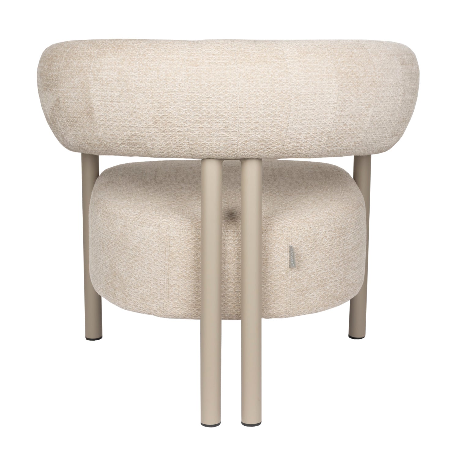 The Heels invites you to sit down — you simply can’t resist. The backrest and armrests flow into each other effortlessly, forming a soft half-circle that feels like a gentle embrace. This cozy look is enhanced by the soft, tactile upholstery in cool tones. The metal base is finished in the same fresh shade, while the closely placed back legs add a playful touch.