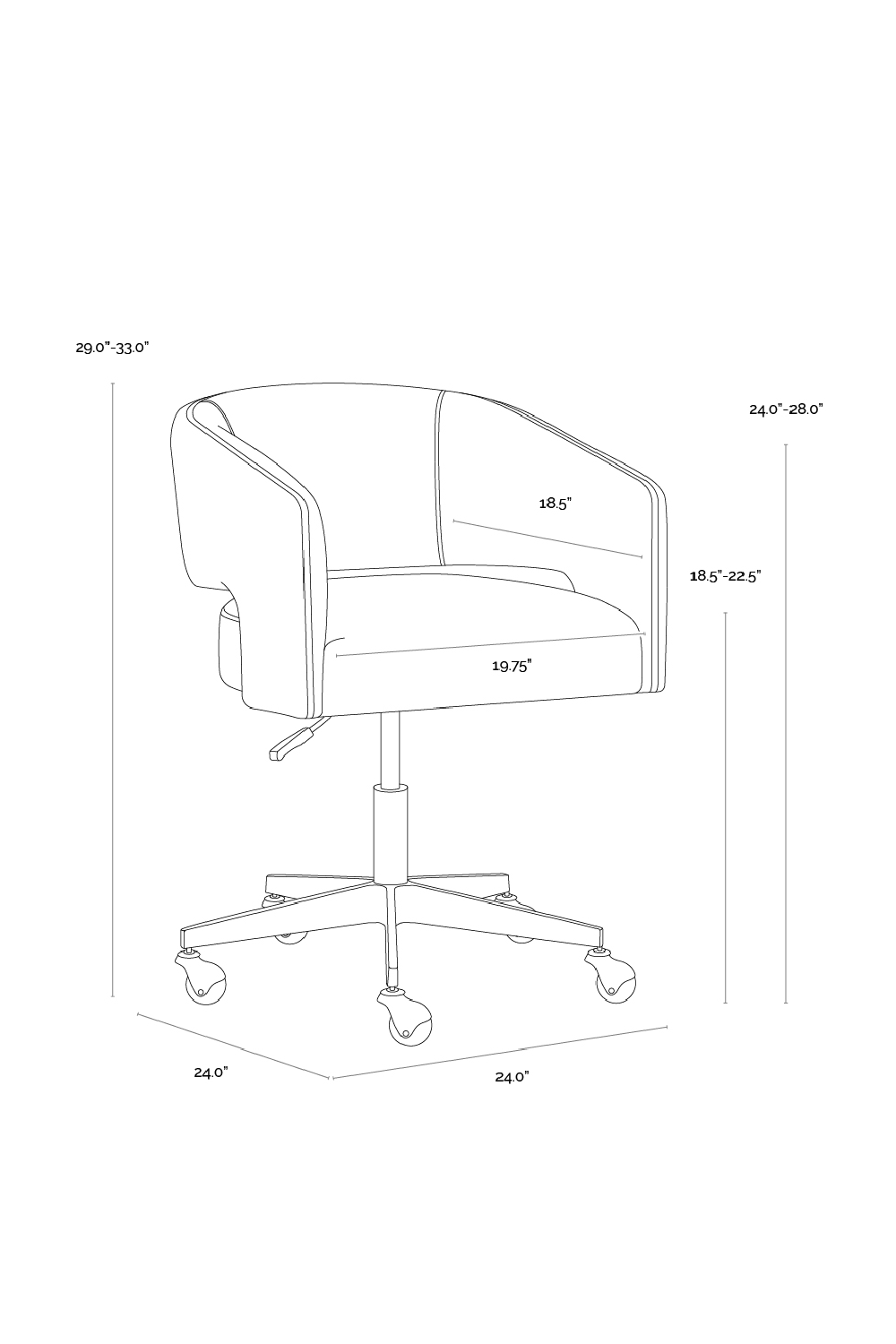 - Seat Dimensions: W20 x D19 x H19-23 in | W50 x D47 x H47-58 cm
