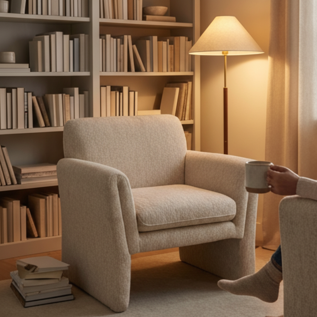 Perfect for: Creating an inviting lounge corner, styling beside a sofa, or adding a refined extra seat in smaller spaces without sacrificing comfort.