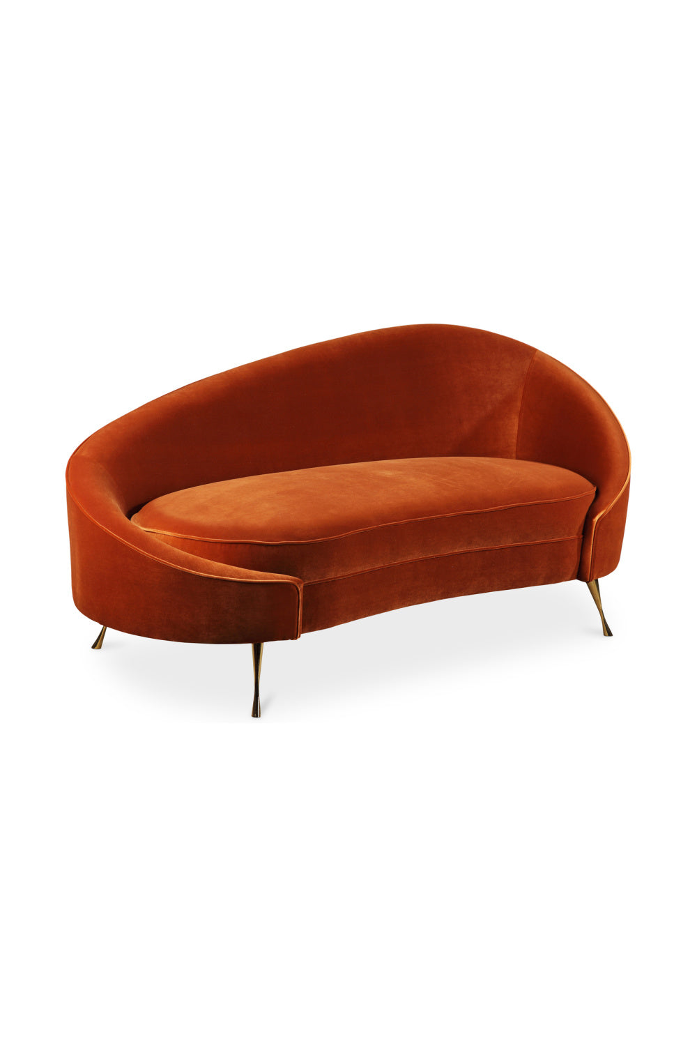 Take a seat on this beautiful retro cloud. An asymmetrical back, velvety softness, and gold stainless steel legs make the Abigail chaise. Perfect for the 60s-obsessed or anyone with impeccable taste.