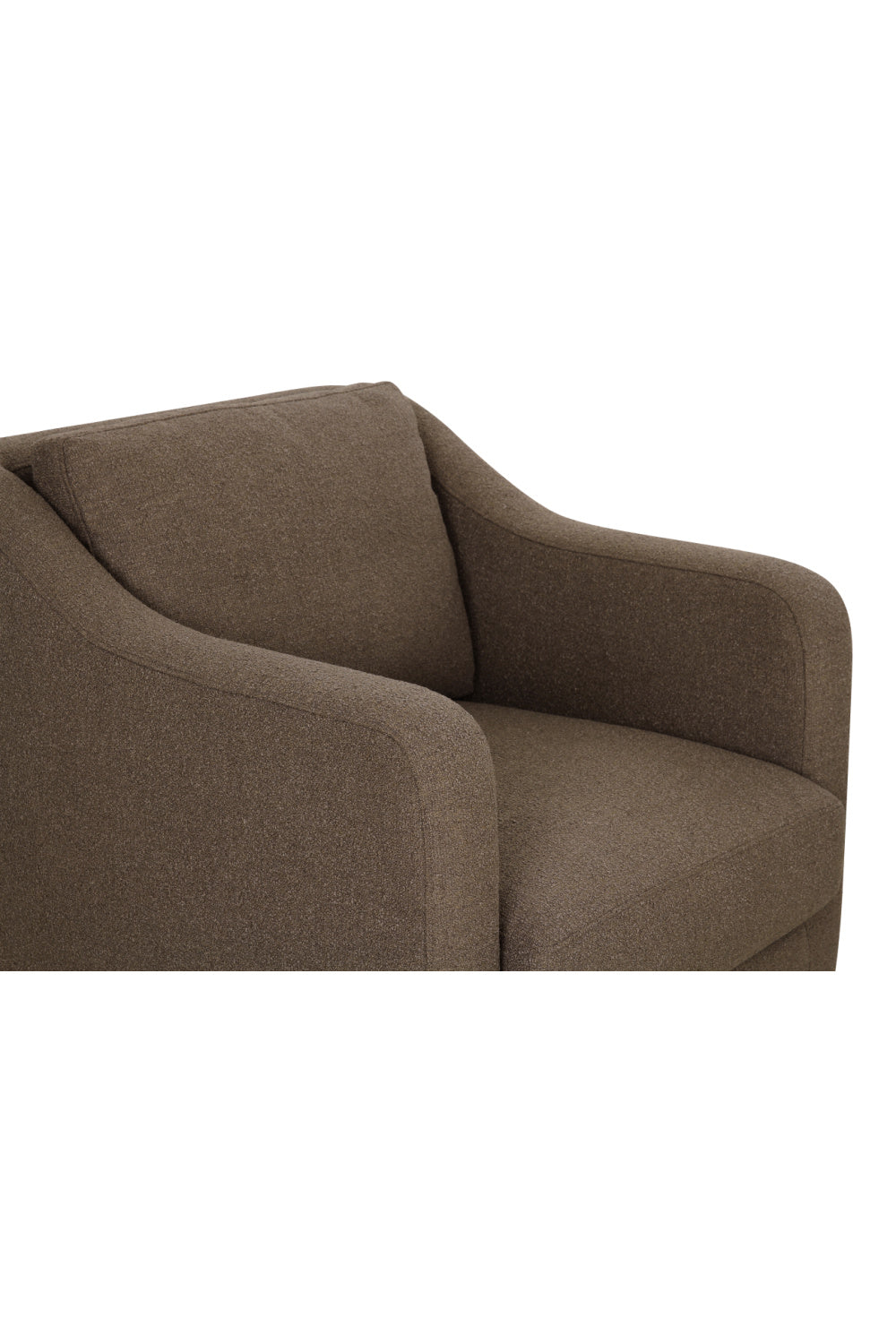 Inspired by traditional and transitional influences, the Hewitt accent chair offers timeless simplicity and commercial appeal with highly textured micro boucle upholstery. It has removable and reversible cushions for versatile comfort, a gentle slope in the arms and high back for an inviting posture, and curved solid birch legs that add elegance to the structure.