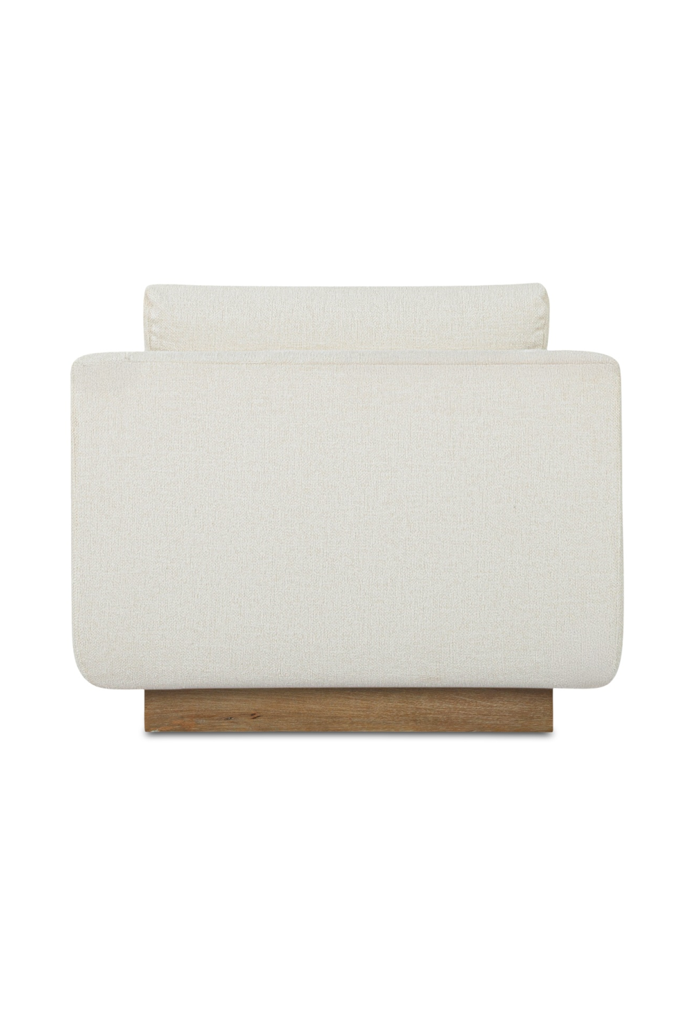 The Keane lounge chair's oversized silhouette invites serene repose, with gentle slopes and soft curves cradling the body. An elevated rubber wood plinth base is enhanced by wire brush finishing, while the plush back cushion promises enduring comfort.