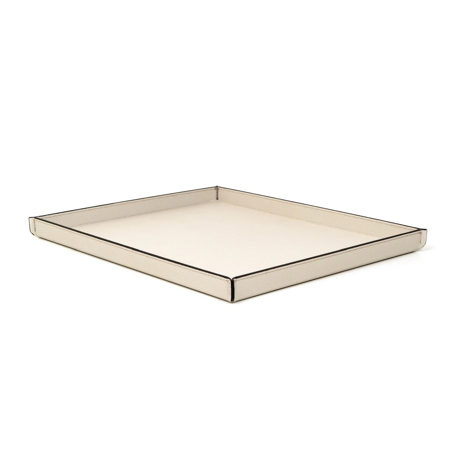 Rectangular Calfskin Leather Tray | Pinetti Leslie - 6"W x 10"D x 1"H / Cream - Grained Leather is backordered and will ship as soon as it is back in stock.