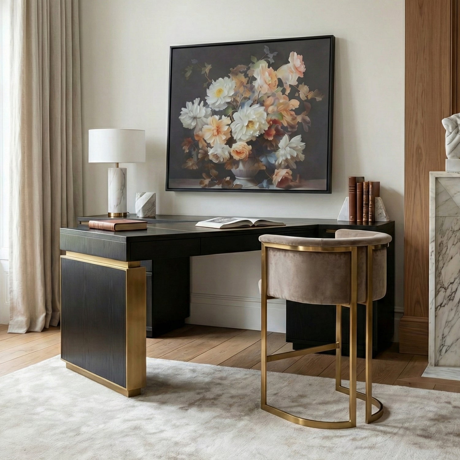 Fresh florals but framed. Atelier reimagines the still life with a modern sensibility. Inspired by vintage oil works, it layers rich tones and soft brushwork into a floral that feels curated. Framed to feel intentional and styled to bring warmth, it’s a quiet standout for walls that want something classic, with a twist.