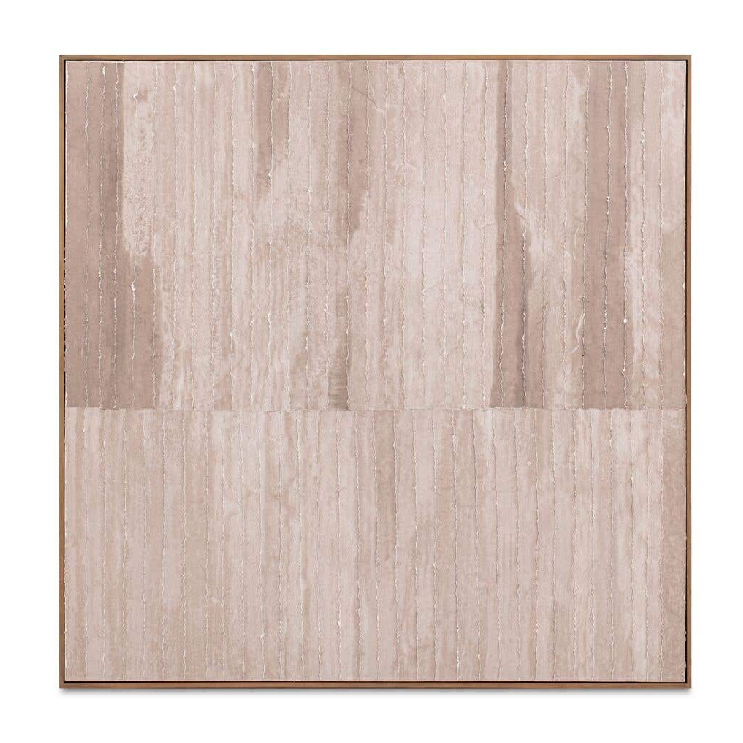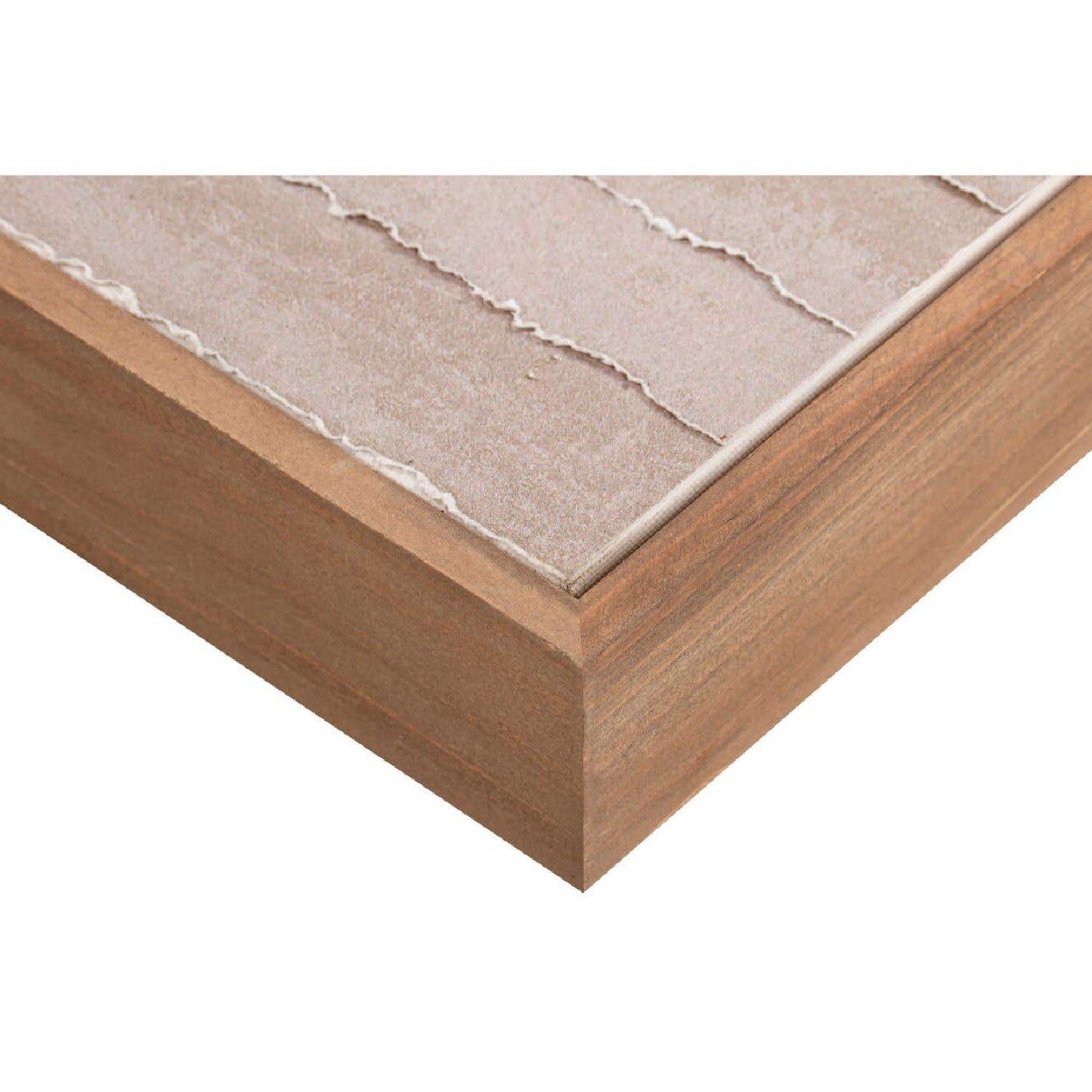 Delicate strips of torn paper are meticulously layered to create a mesmerizing depth of minimalist design in the Willet framed painting. Bathed in warm, neutral tones and arranged in alternating linear form, each piece is a unique expression of artistry. The solid pine frame complements the serene palette, enhancing its transitional appeal.