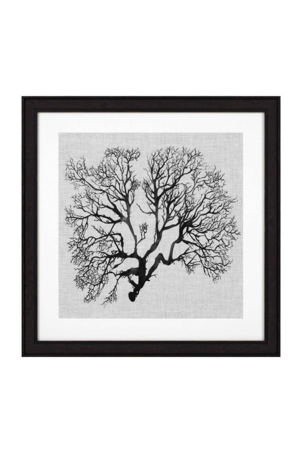 Adorn your home with this stunning 4-piece set of Shadow Sea Fan Prints by American artist Grace Popp. Each monochrome print comes in a black wooden frame with clear glass.