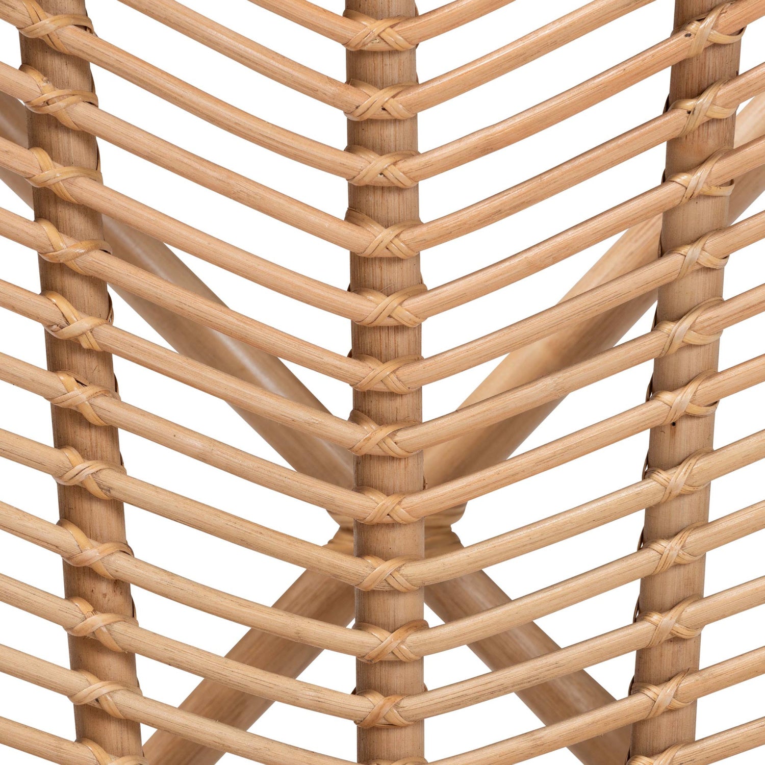 Introduce the appeal of exotic craftsmanship to your space with the stunning Eliava accent chair. Made in Indonesia, this bohemian piece consists entirely of handcrafted natural rattan. The striking outline of its flora-inspired backrest creates a captivating display rich with rustic flare. The Eliava will arrive fully assembled and features angled legs connected by a crisscross base for excellent stability and support. With invigorating artistry, the Eliava accent chair is sure to refresh any arrangement.