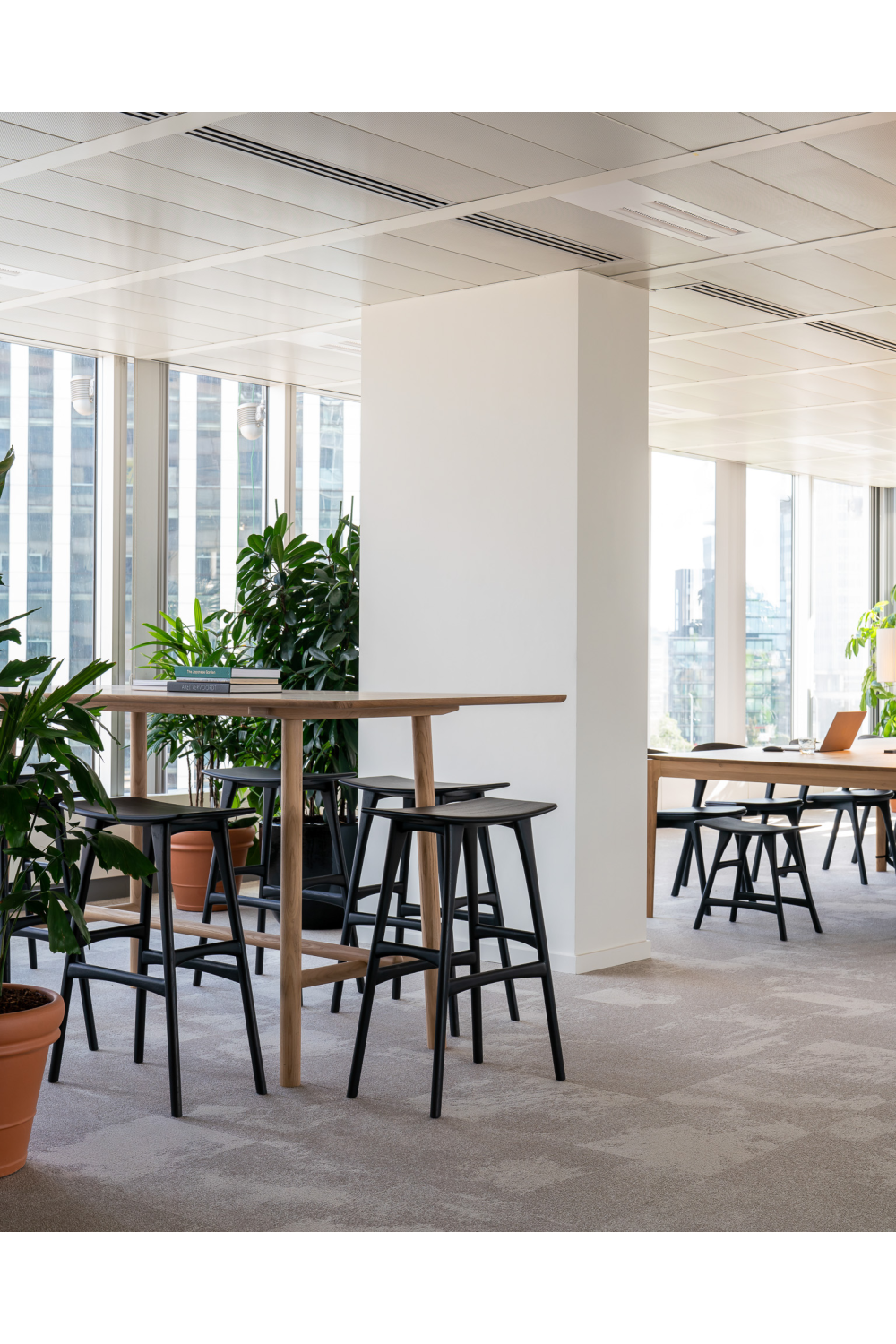 This Oak Backless Bar Stool is one of Ethnicraft's most popular designs because of its versatility. The height of this varnished solid oak Osso stool adds yet another option to its wide array of possibilities - as an elegant and sturdy kitchen stool, a sleek standing desk stool, or as an extra seating solution in the living area. The slightly curved seat and footrest offer ergonomic comfort.