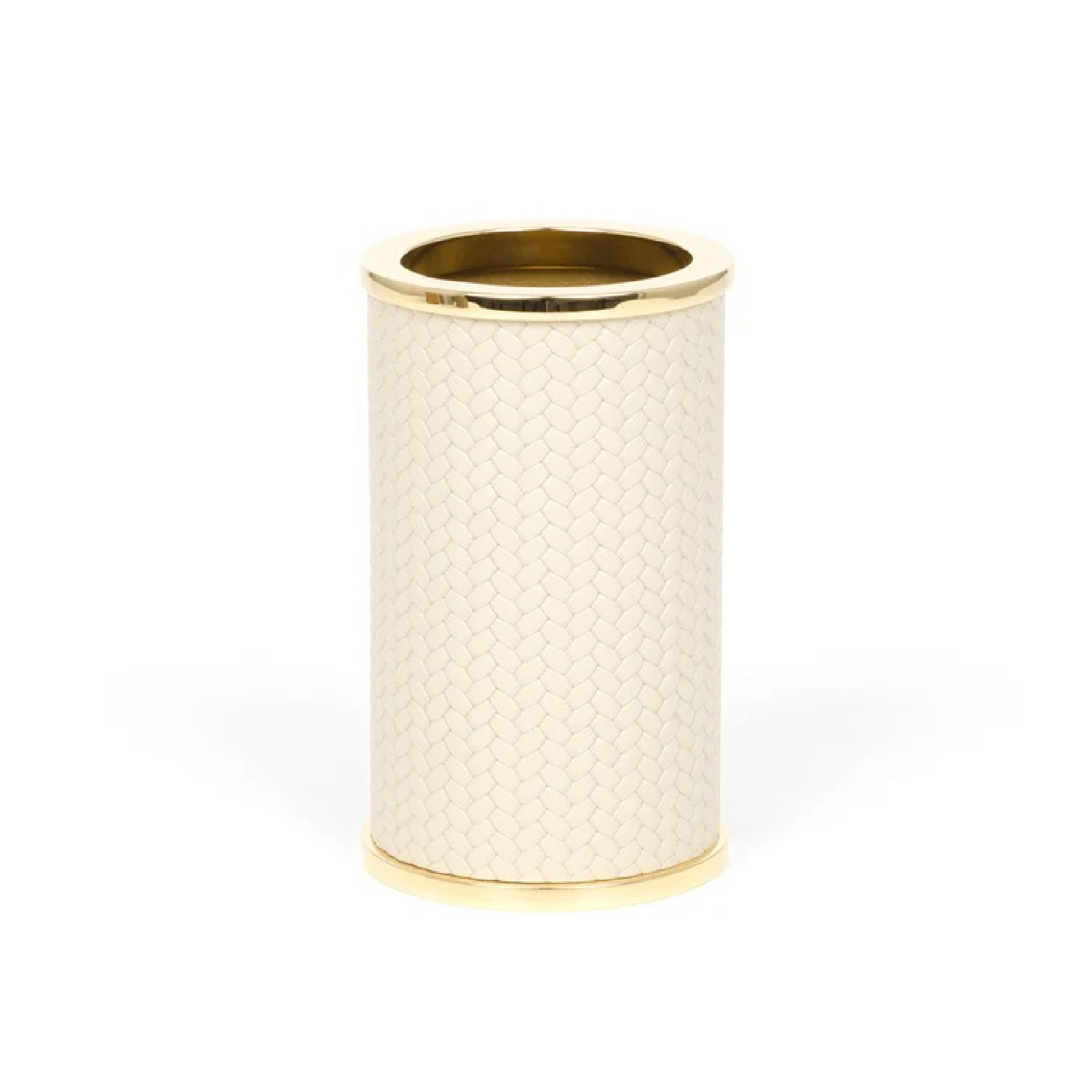 Round Leather Toothbrush Holder | Pinetti Olimpia - Burnished Brass / Cream - Grained Leather is backordered and will ship as soon as it is back in stock.
