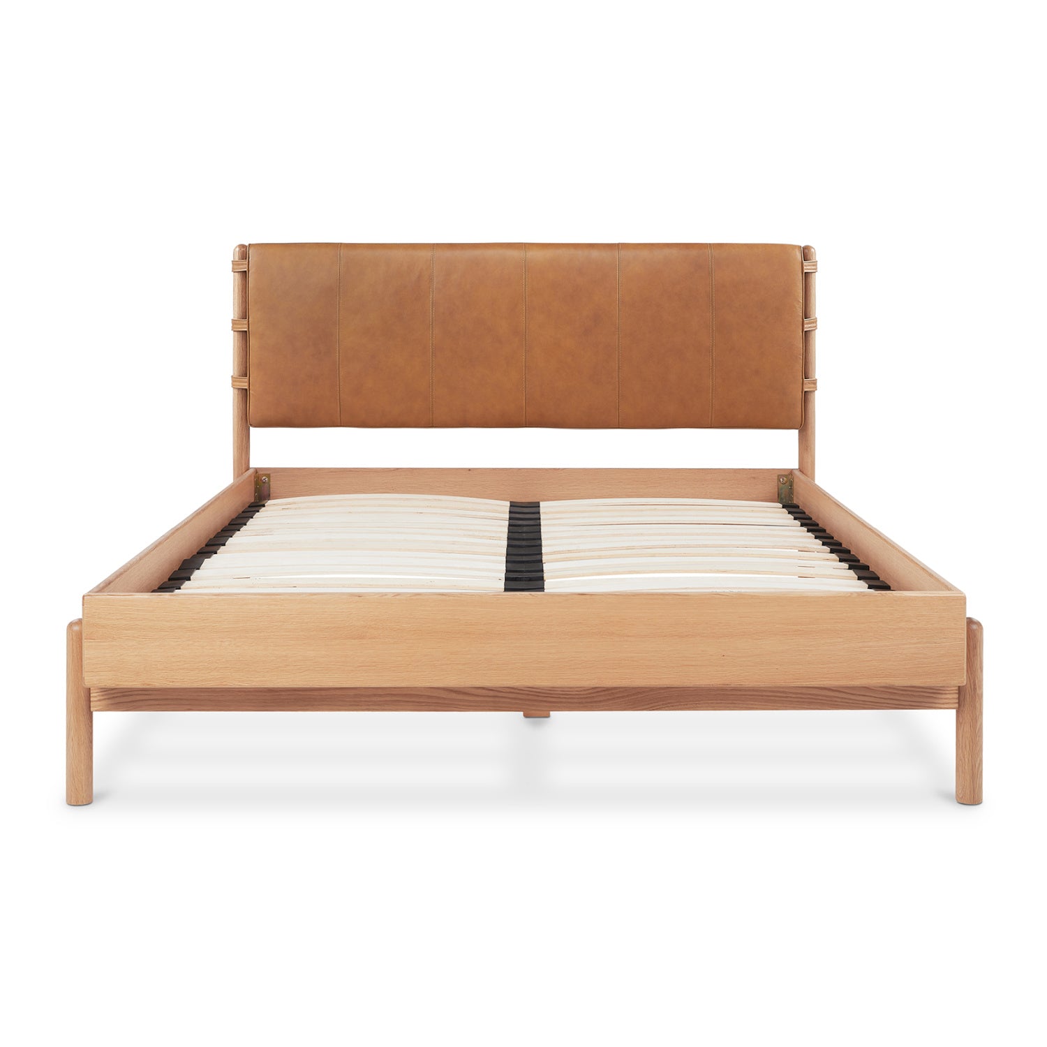 Crafted with a high-quality leather headboard and rounded solid oak legs, the Colby bed frame elegantly brings understated luxury with superb craftsmanship. The soft curves of the leather headboard provide a sense of warmth and coziness, while the rounded legs add a touch of organic form to the overall design. The clean lines and natural materials create a harmonious and sophisticated piece, fitting seamlessly into any contemporary space.