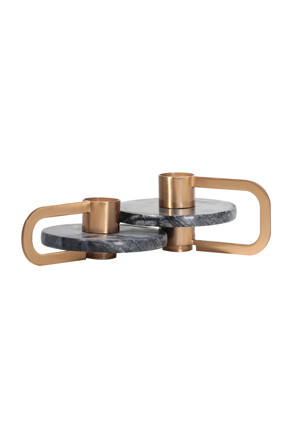 Exquisitely hand-crafted, this stylish Bennet candle holder features a flawless metal and marble body.