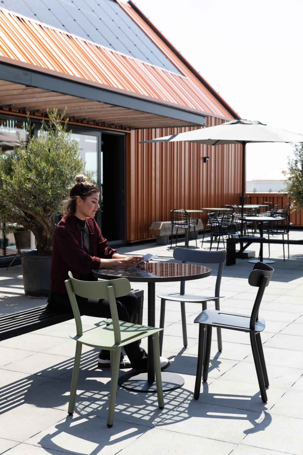 We developed the ‘Friday’ garden chair in cooperation with our talented designing friends from Studio Ape. ‘Friday’ is a reinterpretation of the classic bistro chair. But there is no wood involved in our version. Friday is fully made out of maintenance free aluminum. Smart right? But there is more! We made the hind legs go right through the thin seat. This not only makes for an interesting design value, but also ensures stacking the ‘Friday’ chair up to four pieces. Comes in a set of 2. For indoor & outdoor use.