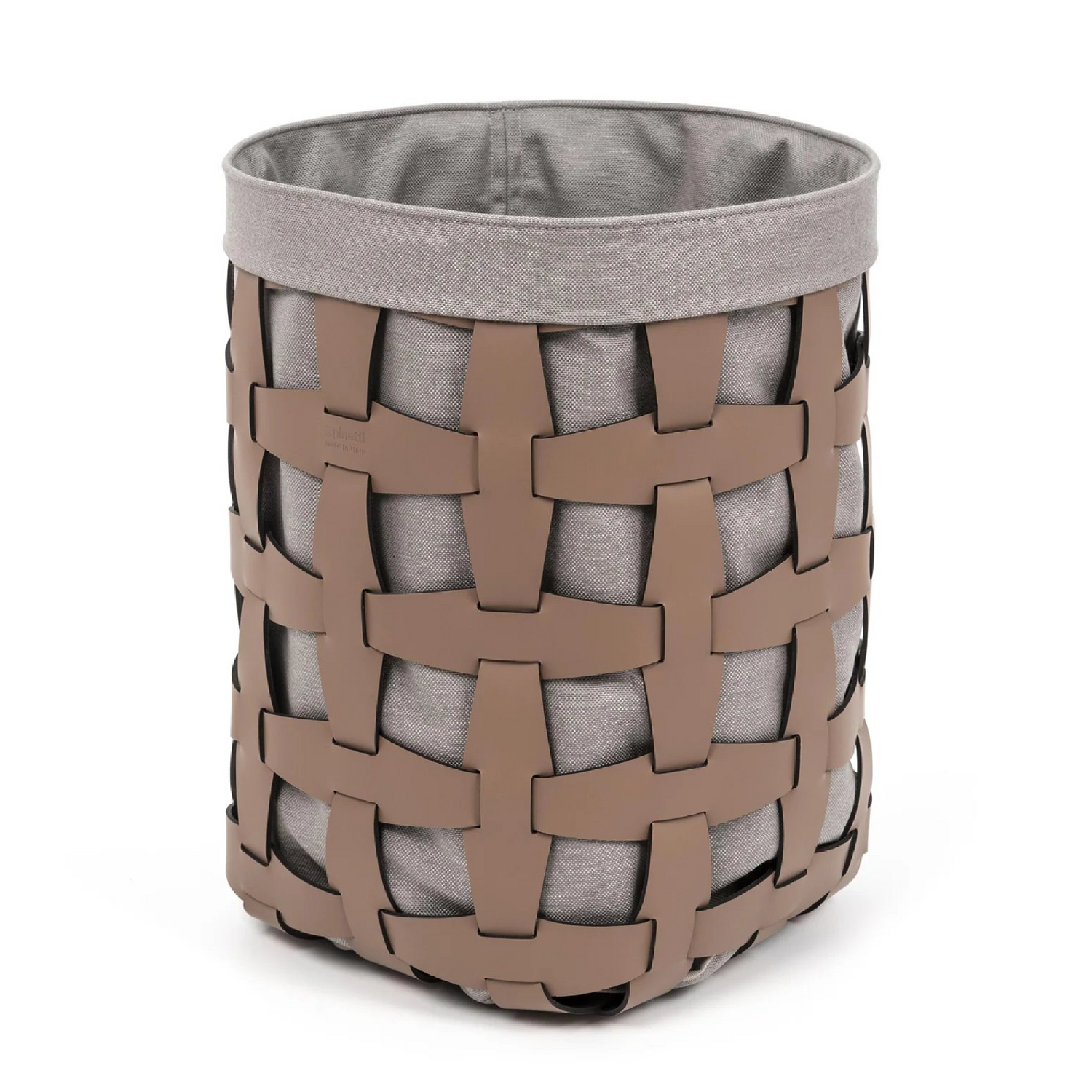 An attractive contrast between leather and cotton fabric. Our Hook basket is hand-woven, made with eco-friendly, washable, and resistant material suitable also for outdoor use. The inside fabric in linen and cotton is also available in taupe and cream color, is removable, and washable. These two sizes are a precious addition to any bathroom for laundry.