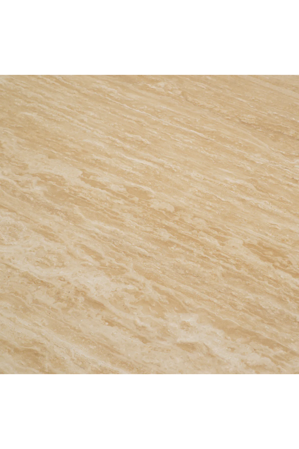 With its round marble top of white marble and tapered brass base. This sophisticated piece pairs a lustrous brushed brass finish with a unique travertine top, radiating timeless luxury. Dining Table Nathan encapsulates the essence of a contemporary design. Simple, elegant lines allow the noble material to take the spotlight. Decorate your home with this elegant piece for an undeniably distinguished look.