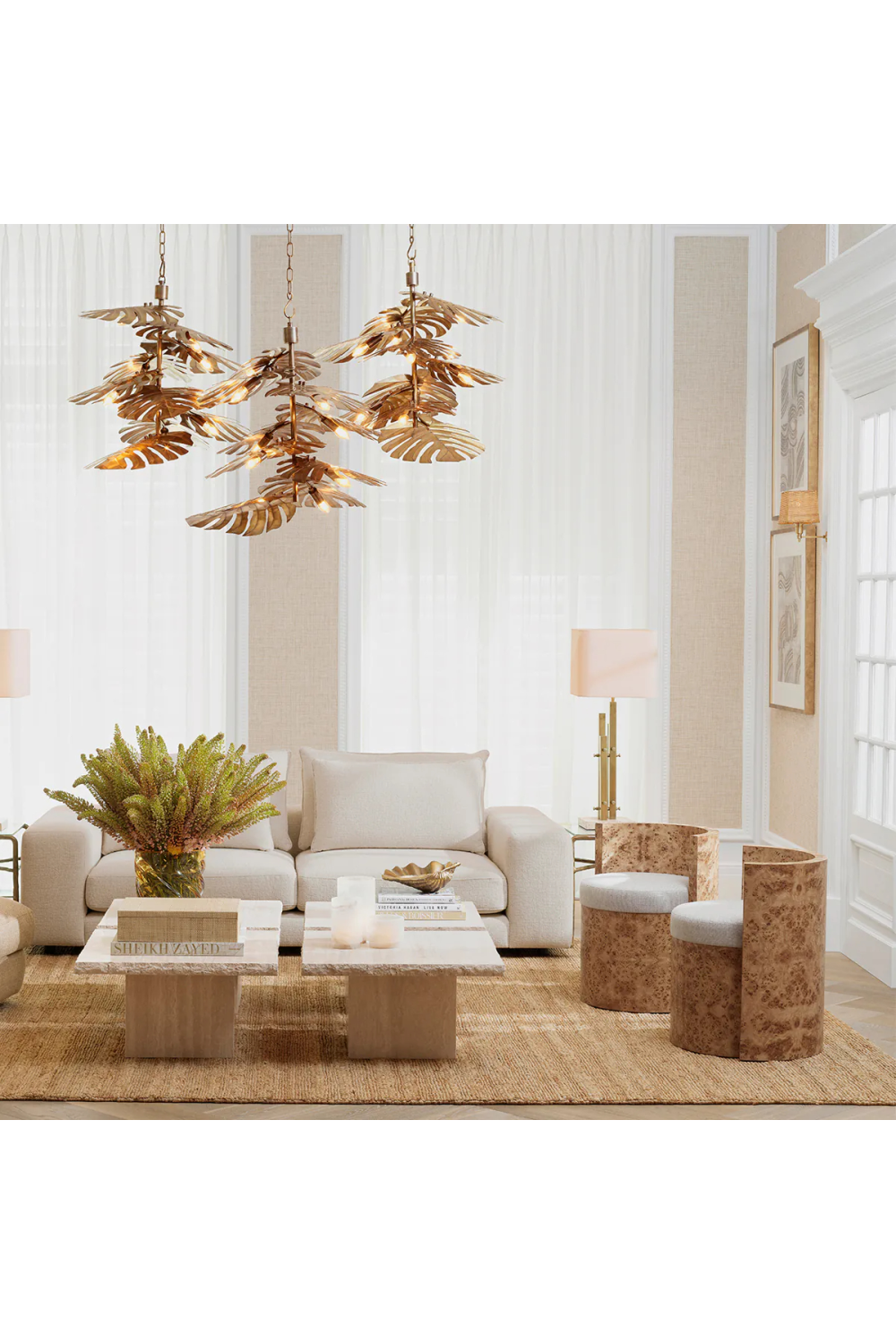 This unique veneer brings a dynamic, organic character to the design, paired seamlessly with soft Loki natural upholstery. This harmonious blend of rich textures and warm tones creates a serene yet sophisticated statement for discerning interiors.