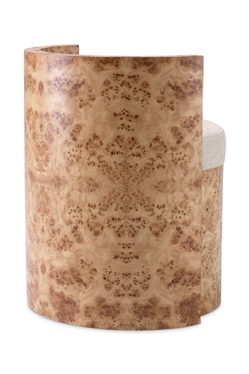 Embodying refined natural elegance, Chair Arcadia features a light brown mappa burl veneer, a decorative wood veneer prized for its complex, swirling grain patterns and striking color contrasts.