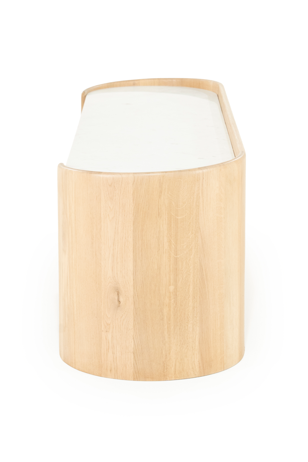 Elevate your living space with the Marble Top Oak TV Cabinet by Eleonora Don. Crafted from rich oak wood, this cabinet combines timeless design with modern functionality. The smooth marble top adds a refined touch, providing a durable surface for décor or media devices. Its spacious compartments offer organized storage for your electronics and accessories, blending practicality with elegance for a sophisticated home entertainment setup.