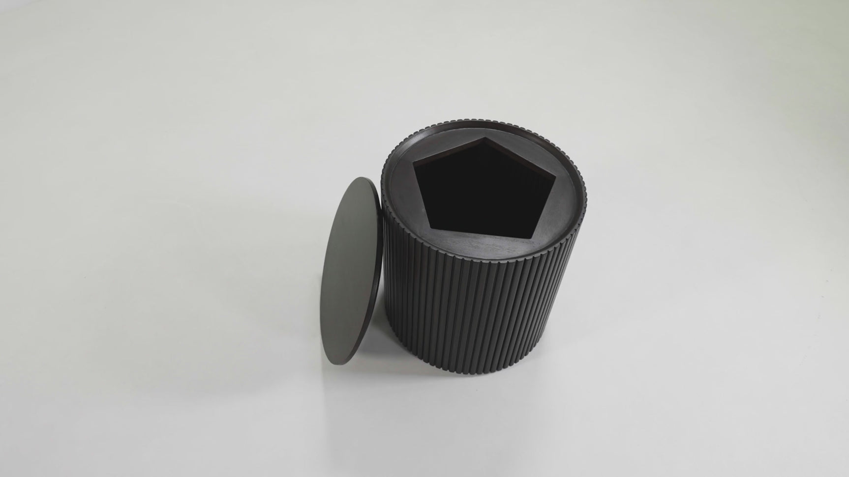 A brilliant blend of functionality and style, the Brown Mahogany Storage Side Table by Ethnicraft is a multi-functional item serving as a side table and a discreet storage solution. This Roller Max table provides a practical and elegant way to keep your living space organized and clutter-free. Encased in a visually appealing stacked wood-stick effect, its tabletop can be effortlessly removed to reveal a storage compartment. It's a space-savvy solution to ensure that your home remains tidy and inviting.