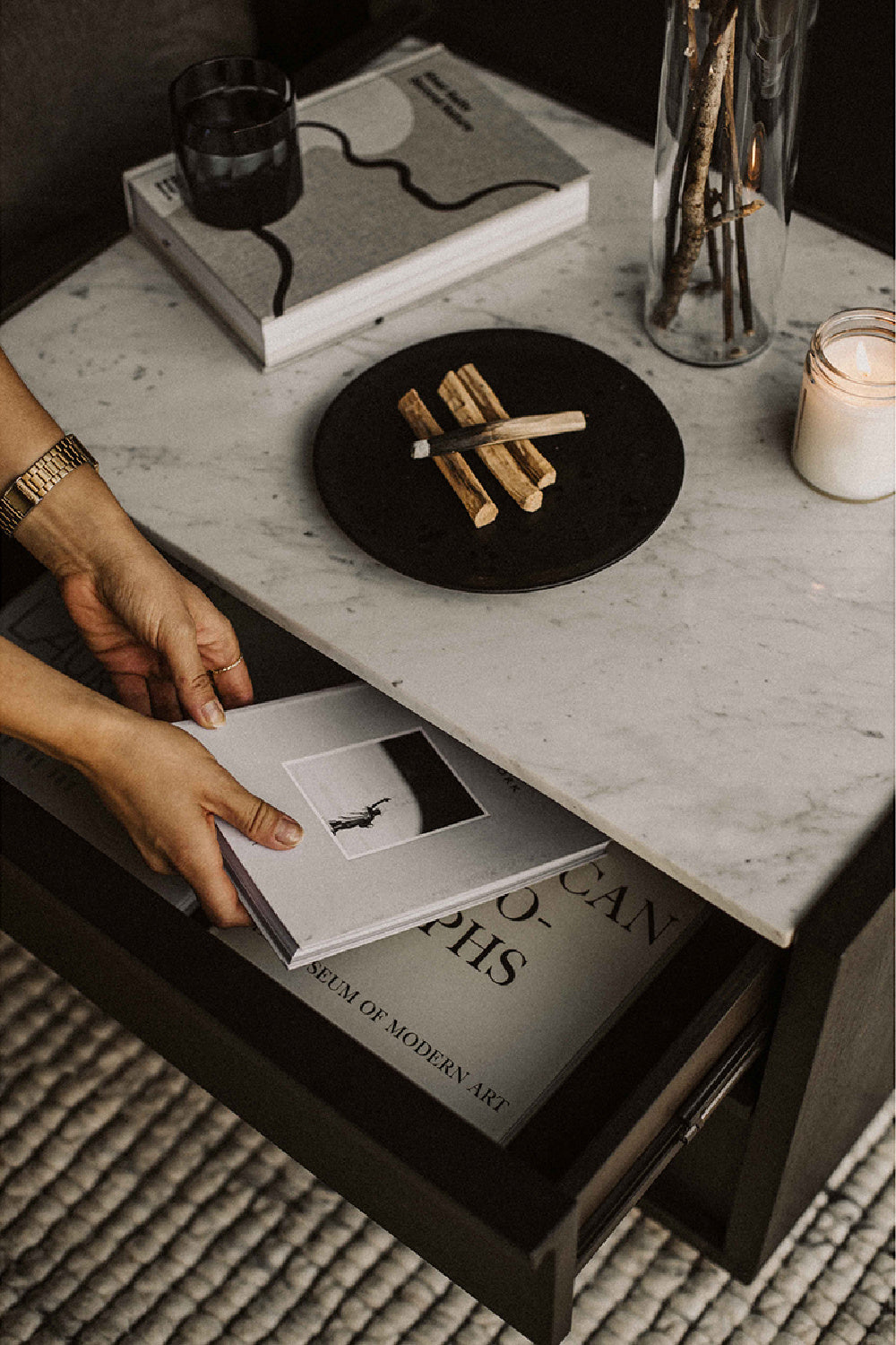 The perfect bedroom companion. A white marble tabletop lies firmly over acacia veneer based drawers. Its two soft-close compartments provide ample space for your bedside needs. It looks best paired with the Ashcroft bed to get that sophisticated aesthetic.