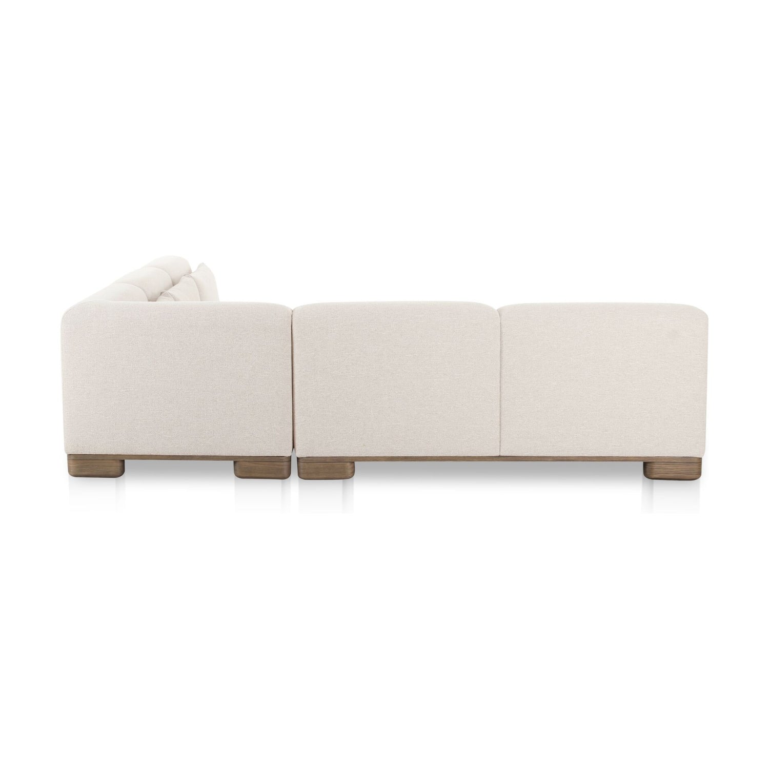 Designed with modular components that expertly function as standalone pieces or as part of modular configurations, the June collection is all about versatility. Wrapped in warm-toned, textured performance fabrics and elevated by oversized oak veneer legs, this piece combines everyday living and understated elegance. Built for ultimate relaxation — the plush feather and fiber fill, along with lumbar toss cushions, offer ultimate comfort. Consists of 3 modular parts: 2 slipper and 1 corner chair for easy switch around.