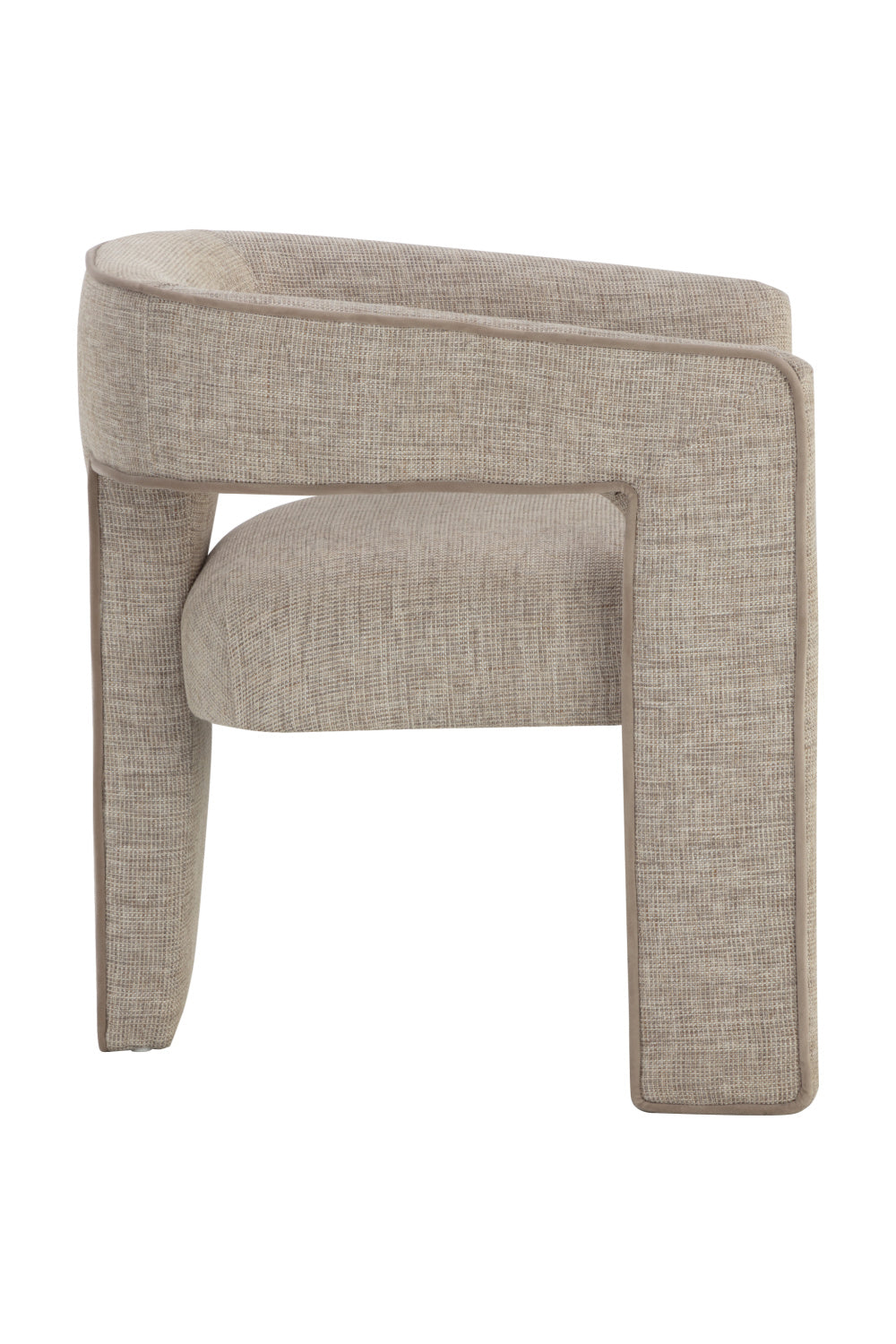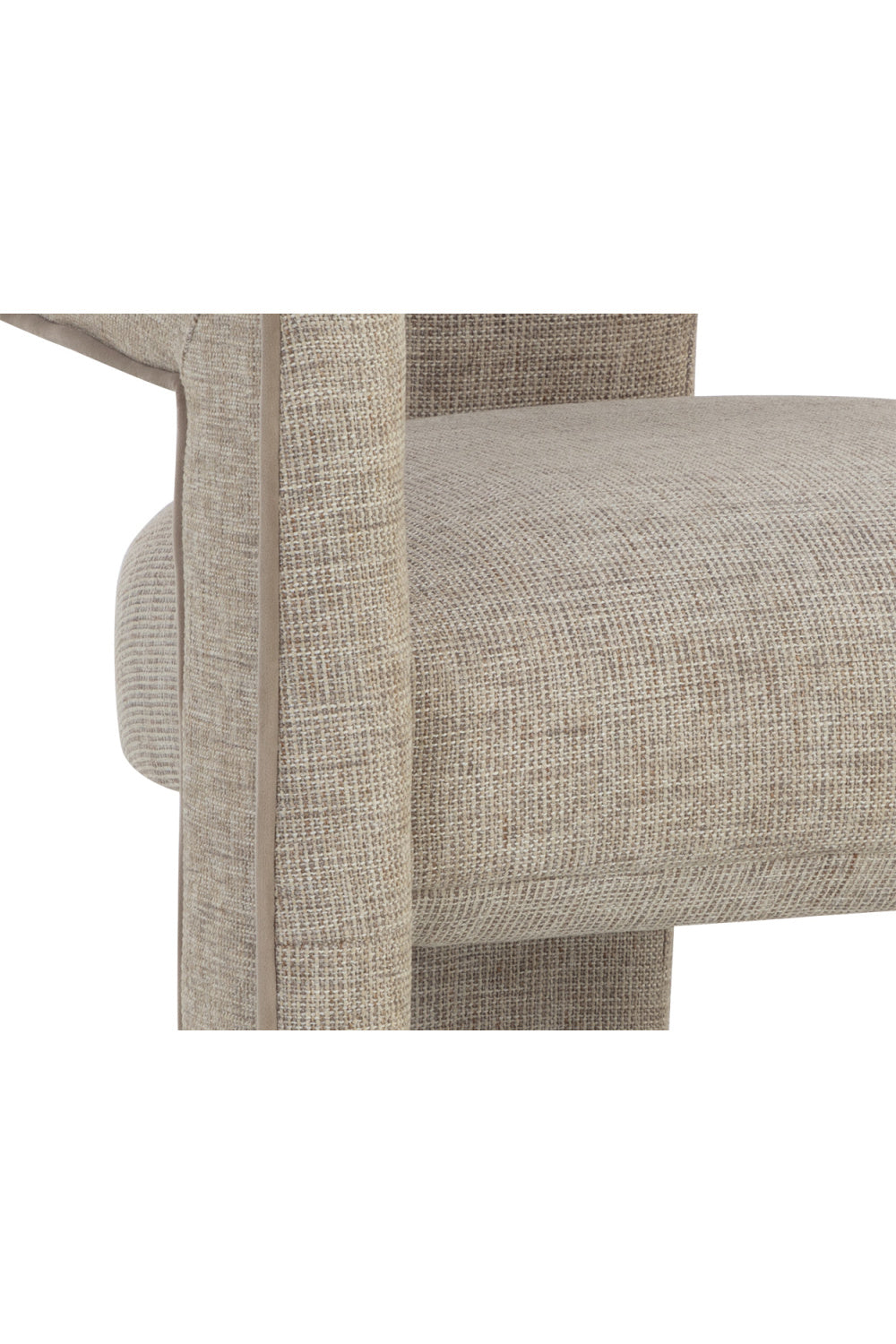 Architecturally inspired with a modern design, the Krasner Dining Armchair features a sturdy cut out frame and floating seat. Fully upholstered in our rhapsody sand fabric with contrast piping in meg mocha fabric for added dimension.