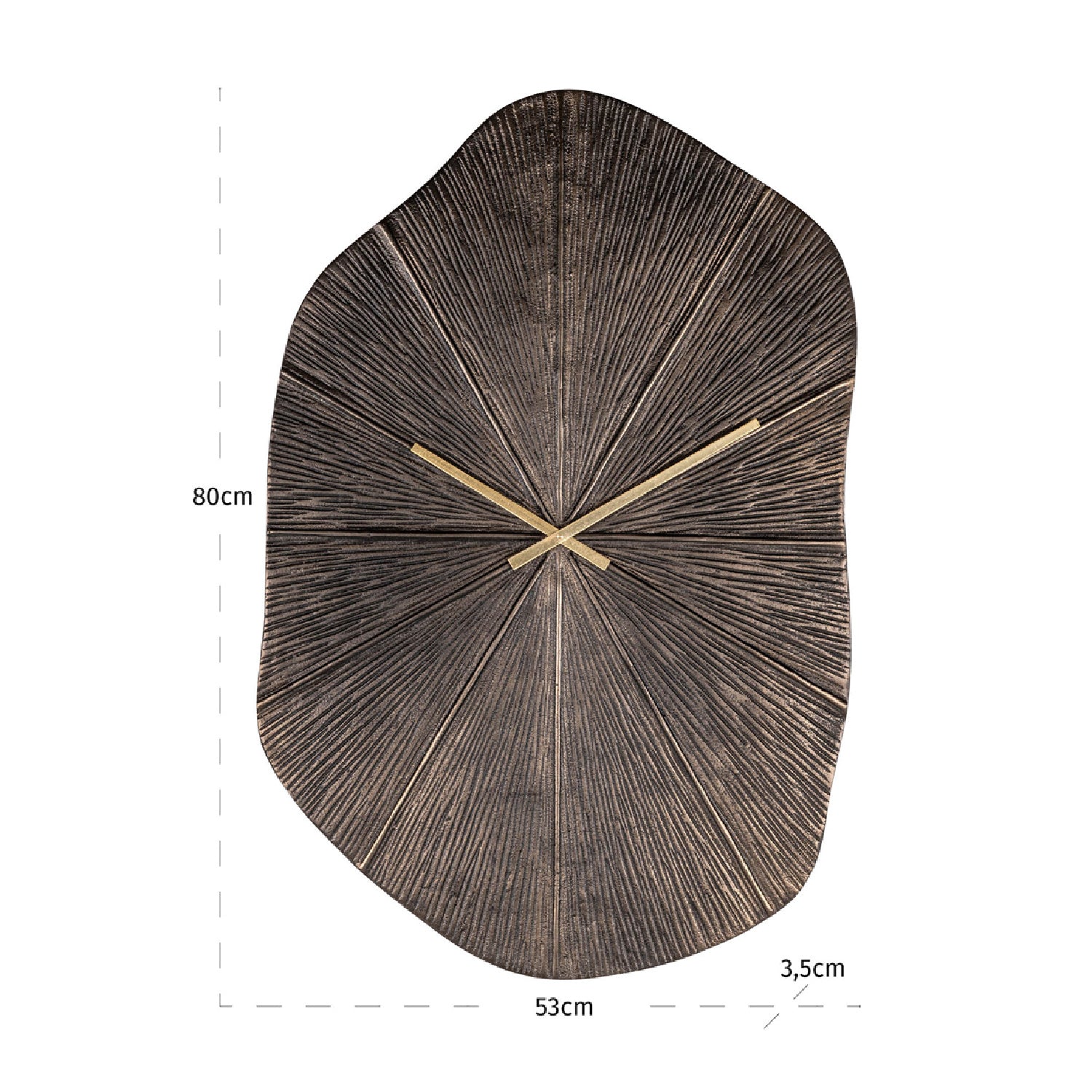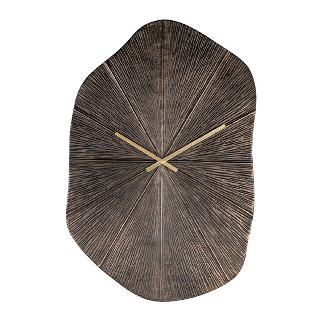 This clock features a round shape with a calm and balanced appearance. The bronze finish with subtle sheen gives the piece a warm impression. Its understated design makes it suitable as a wall accent in various spaces.