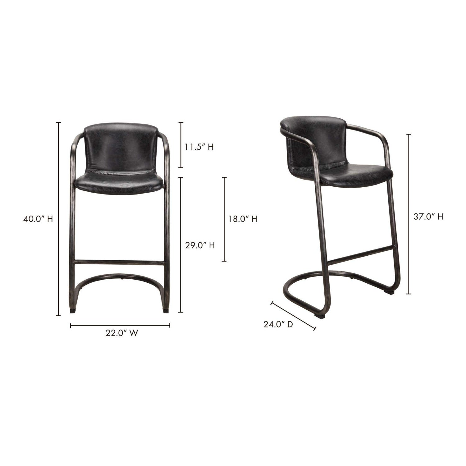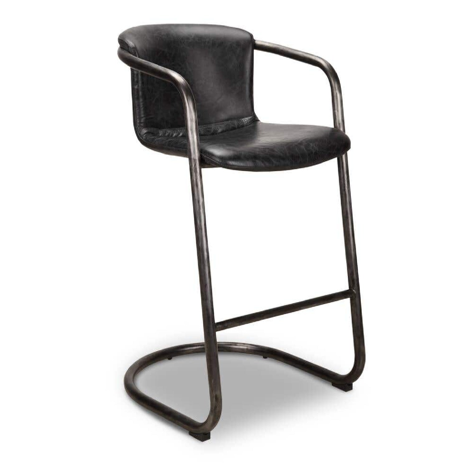 The Freeman bar stool is a look through the lens of taste—a testament to confidence, warmth, and passion. Its modern industrial aesthetic unites the luxurious sophistication of top-grain leather with cool iron framing, adding a wonderfully moody drama to any kitchen space.