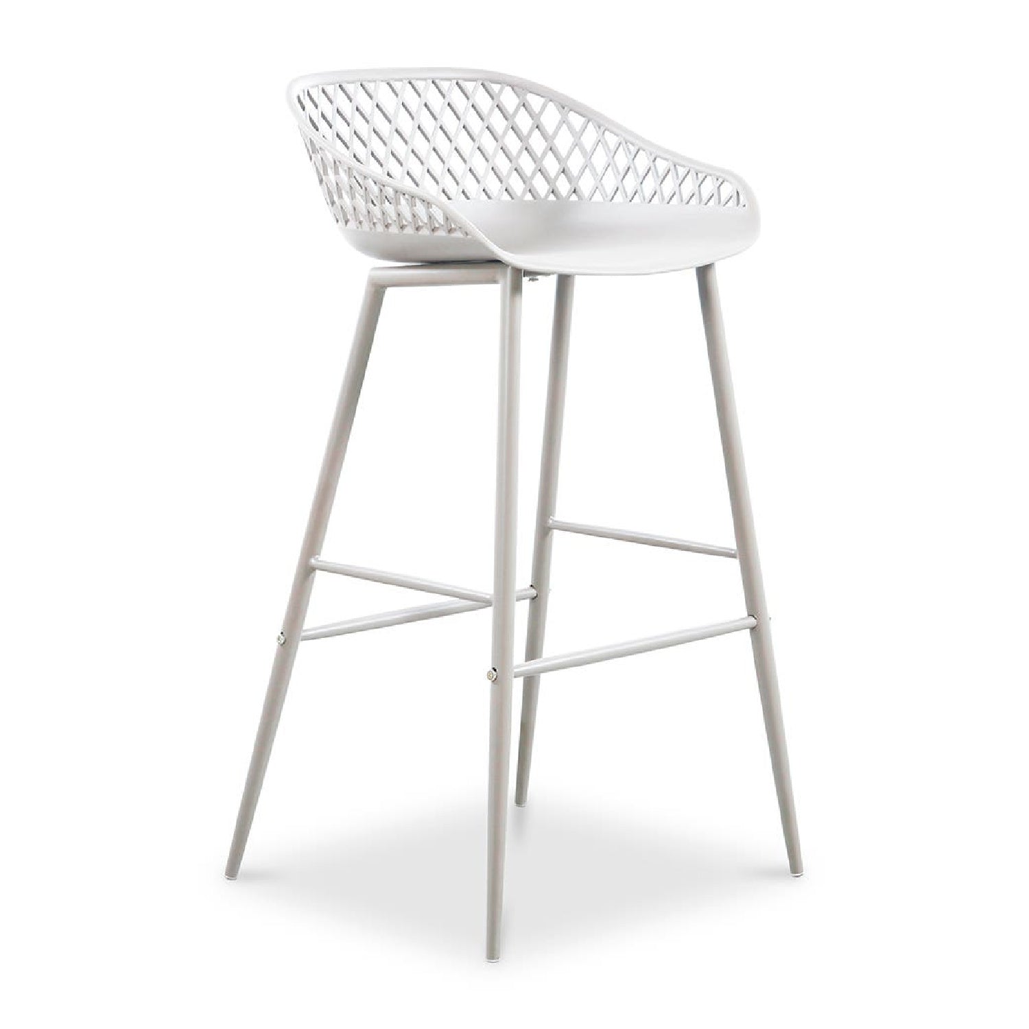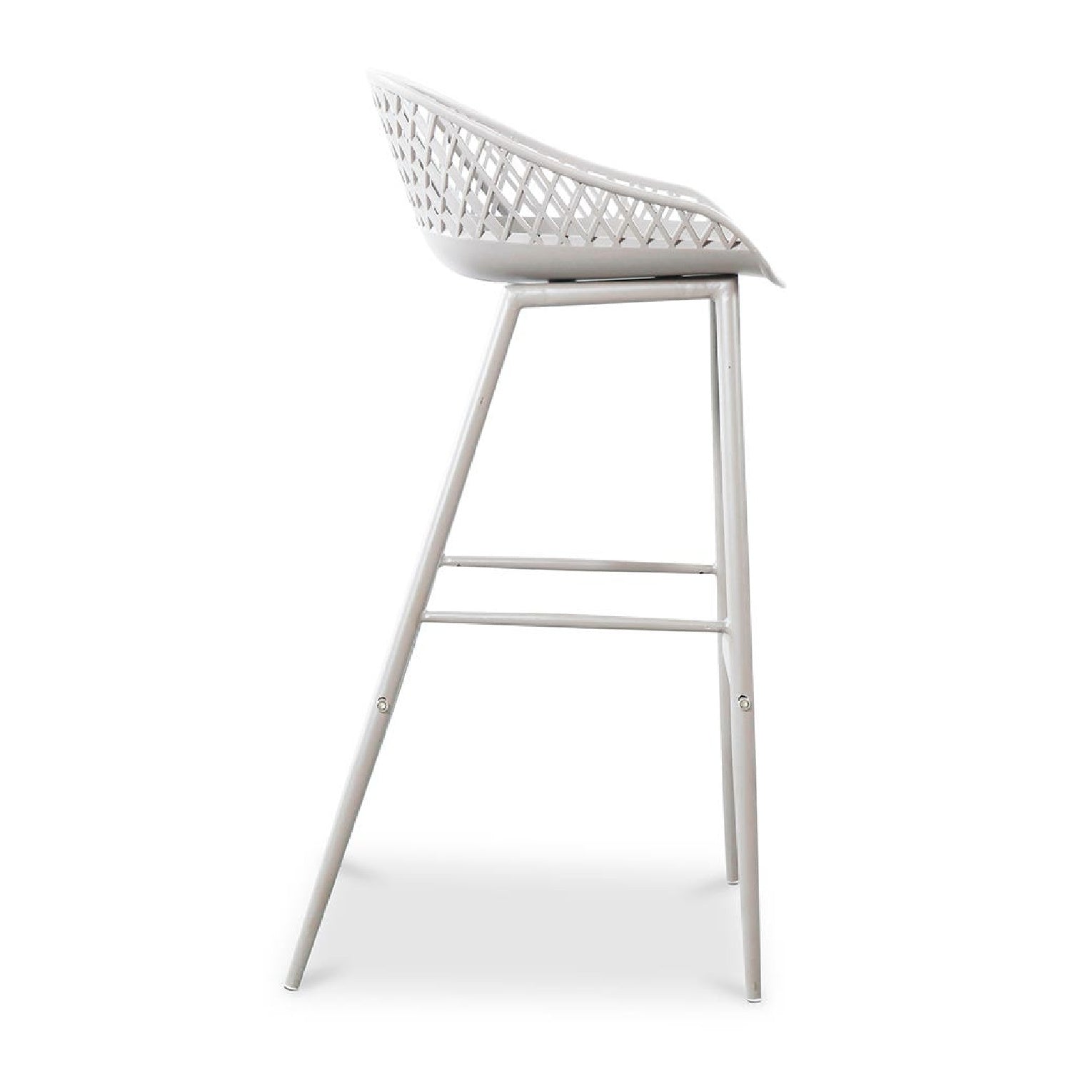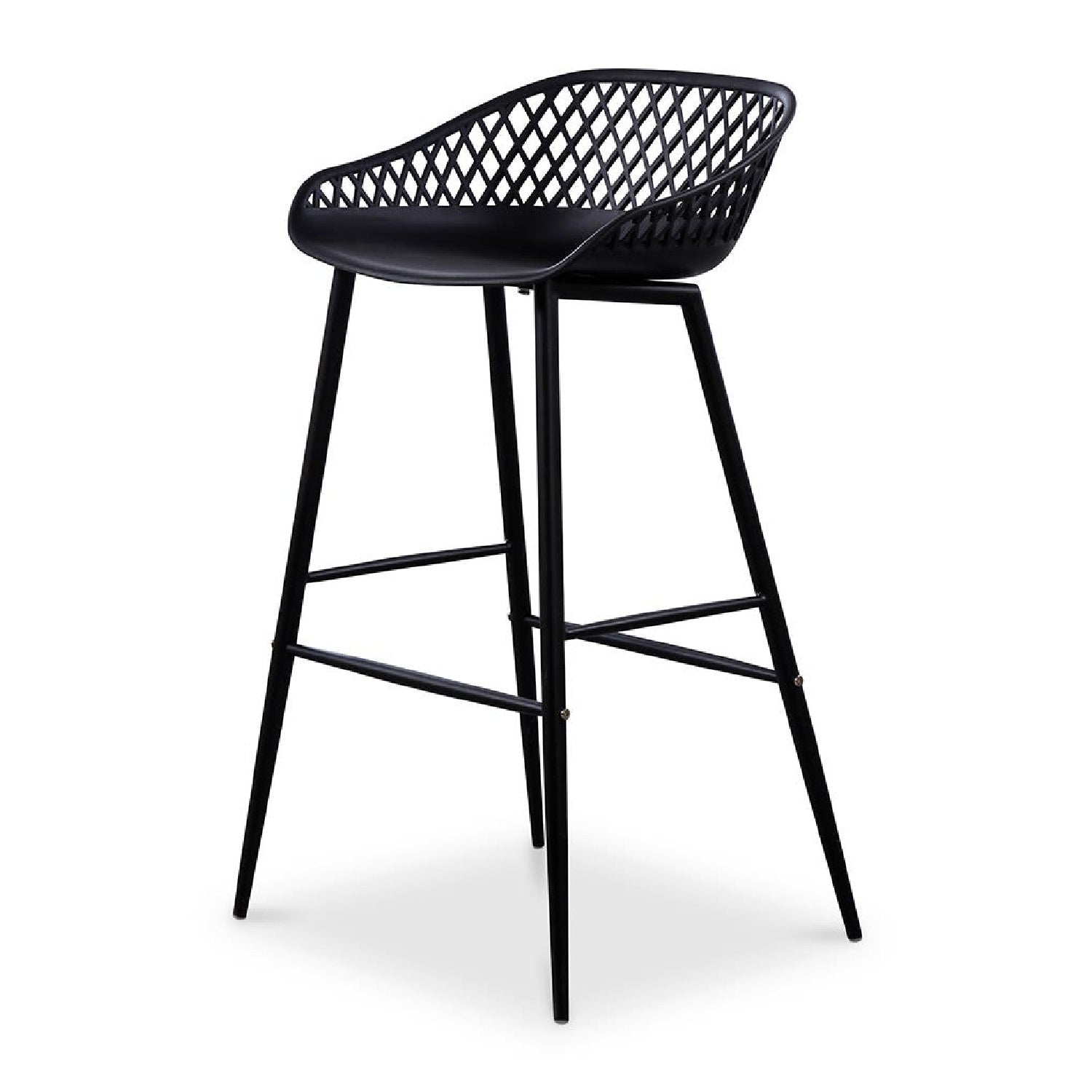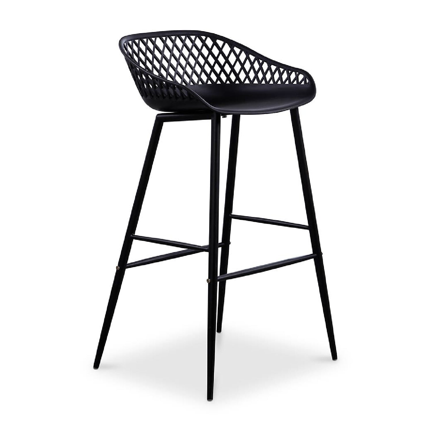 Take a seat in the stylish and comfortable Piazza Bar Stool. Made with a durable polypropylene, this chair comes in several colors that will be sure to complement your outdoor design with its whicker backing and powder coated metal legs. The perfect addition to any table or as extra seating for guests.