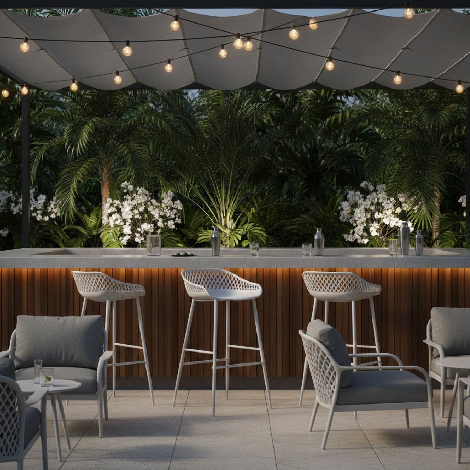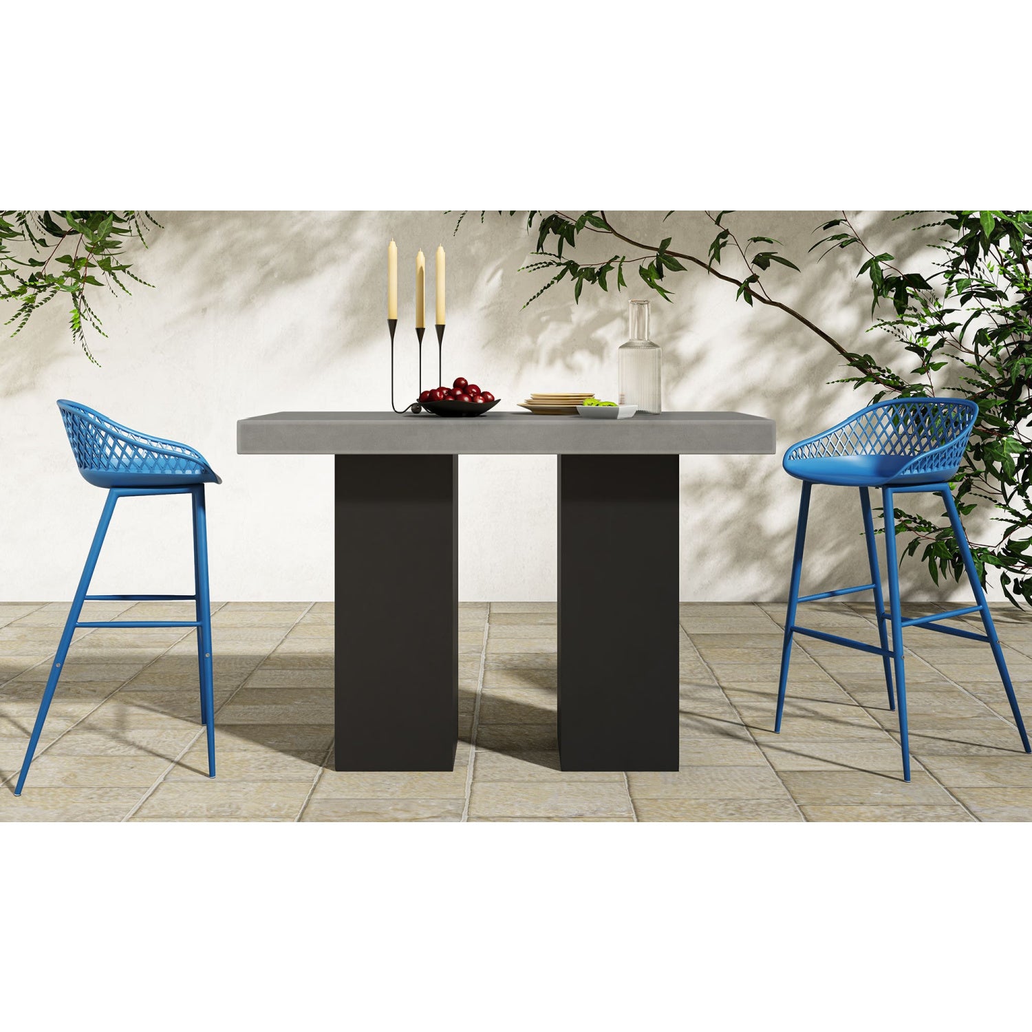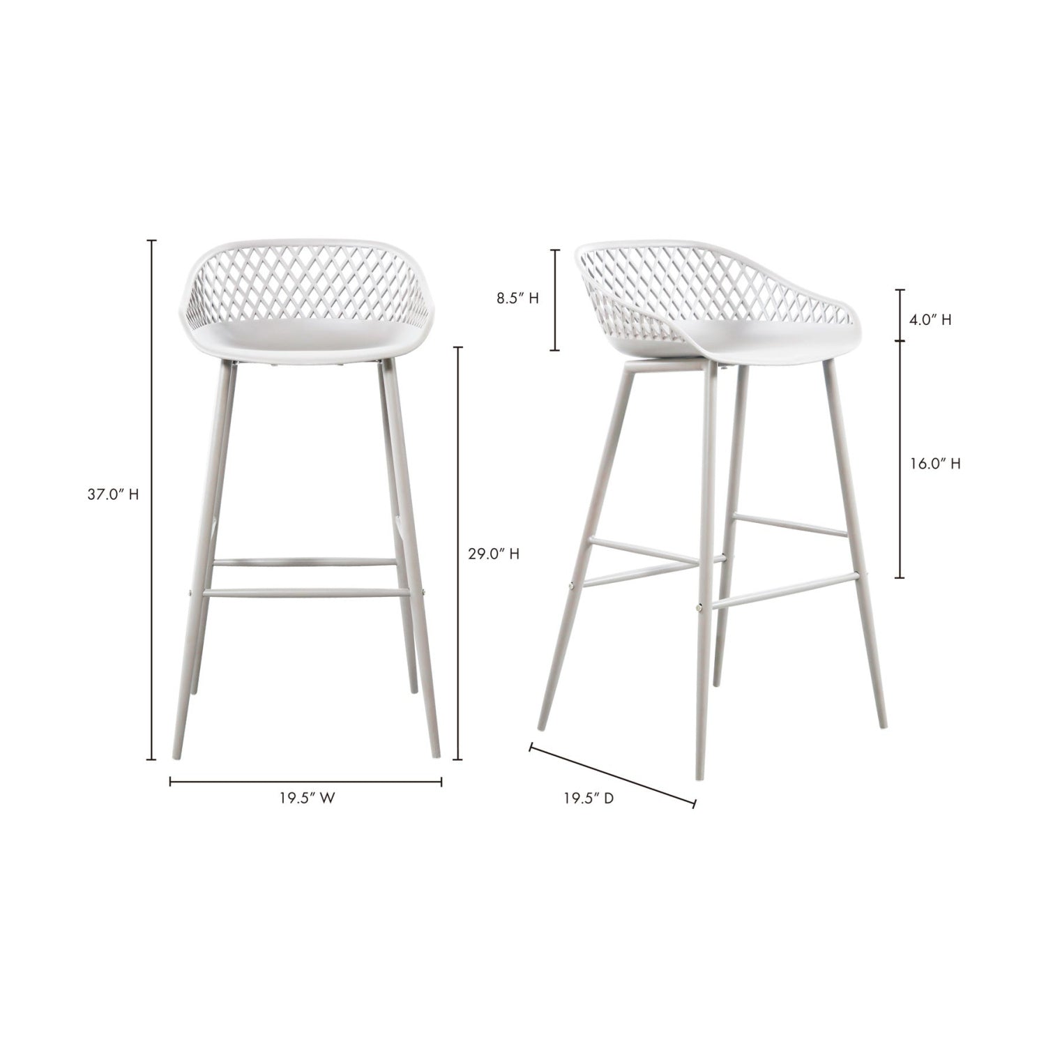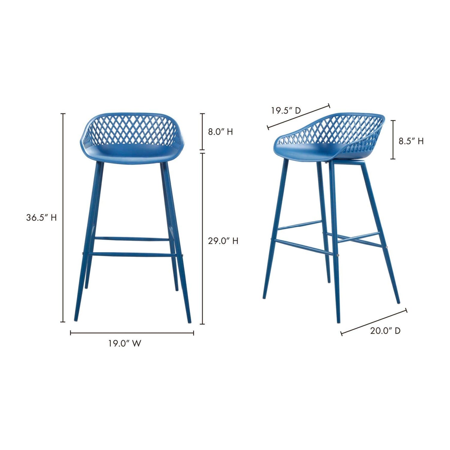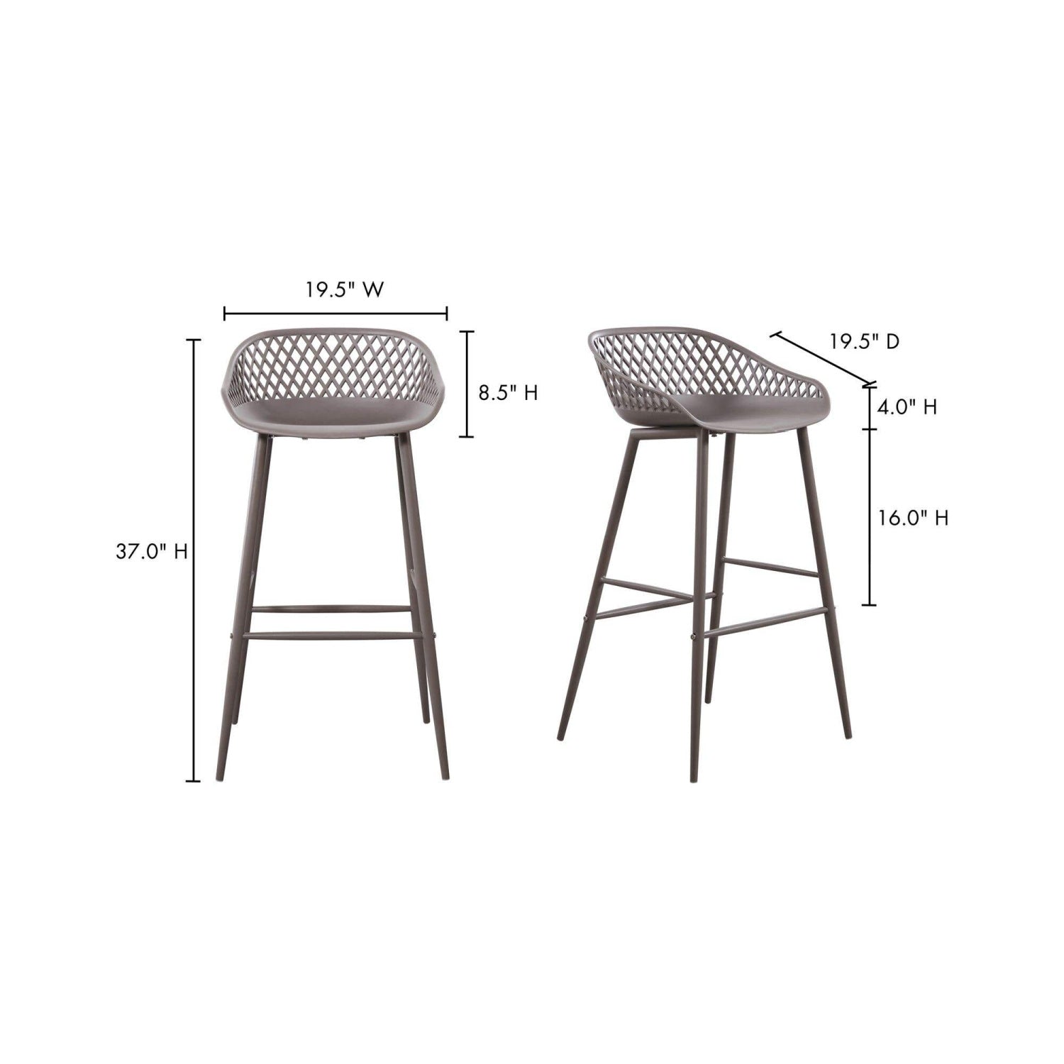 Take a seat in the stylish and comfortable Piazza Bar Stool. Made with a durable polypropylene, this chair comes in several colors that will be sure to complement your outdoor design with its whicker backing and powder coated metal legs. The perfect addition to any table or as extra seating for guests.