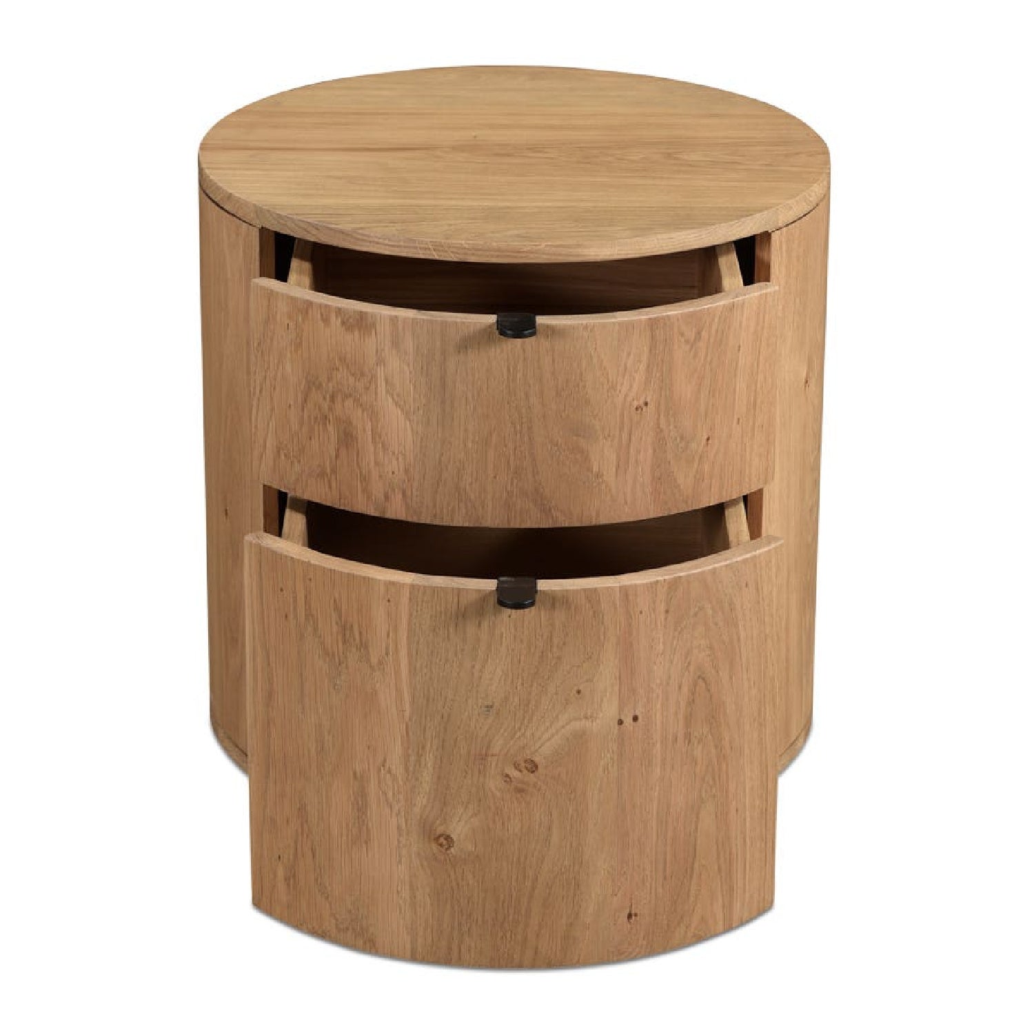 Natural Oak Round 2-Drawer Nightstand | Novi Living Theo