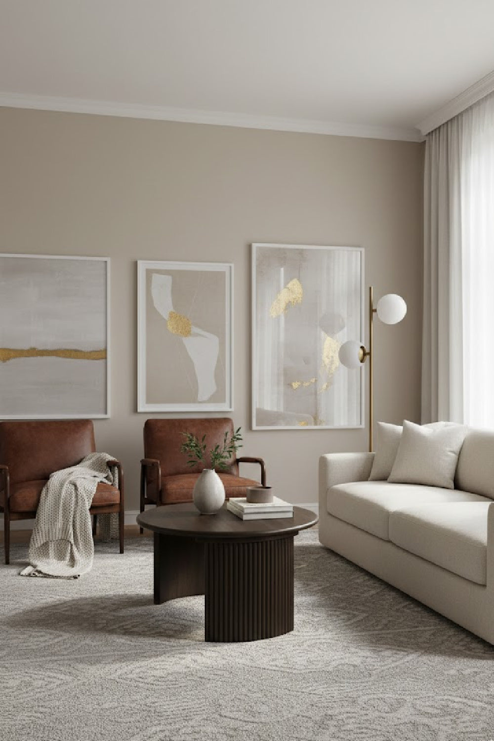 The Penny coffee table's nesting design showcases a circular tabletop with a refined bullnose edge set upon two curved bases adorned with playful, fluted detailing. These solid oak tables infuse dynamic visual interest with the smaller table designed to nest perfectly under the larger one--a harmonious blend of rustic charm and contemporary elegance.