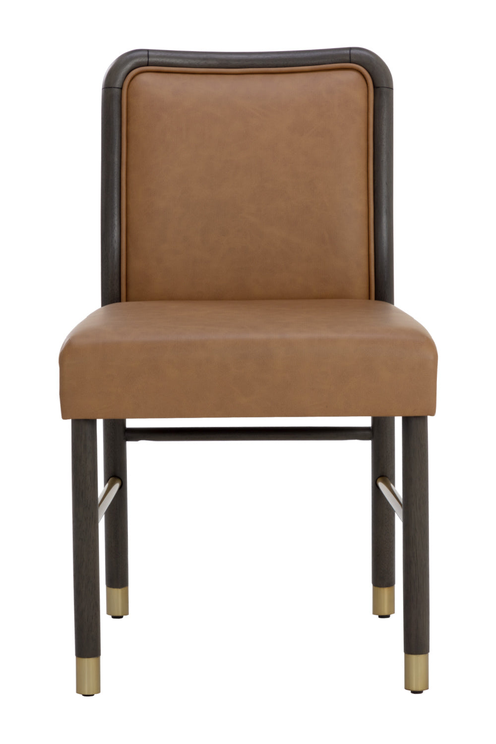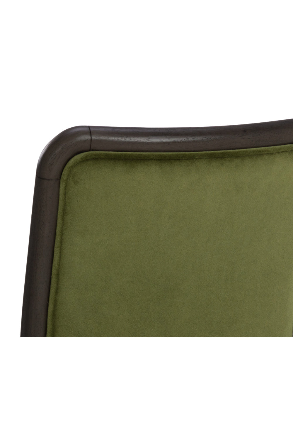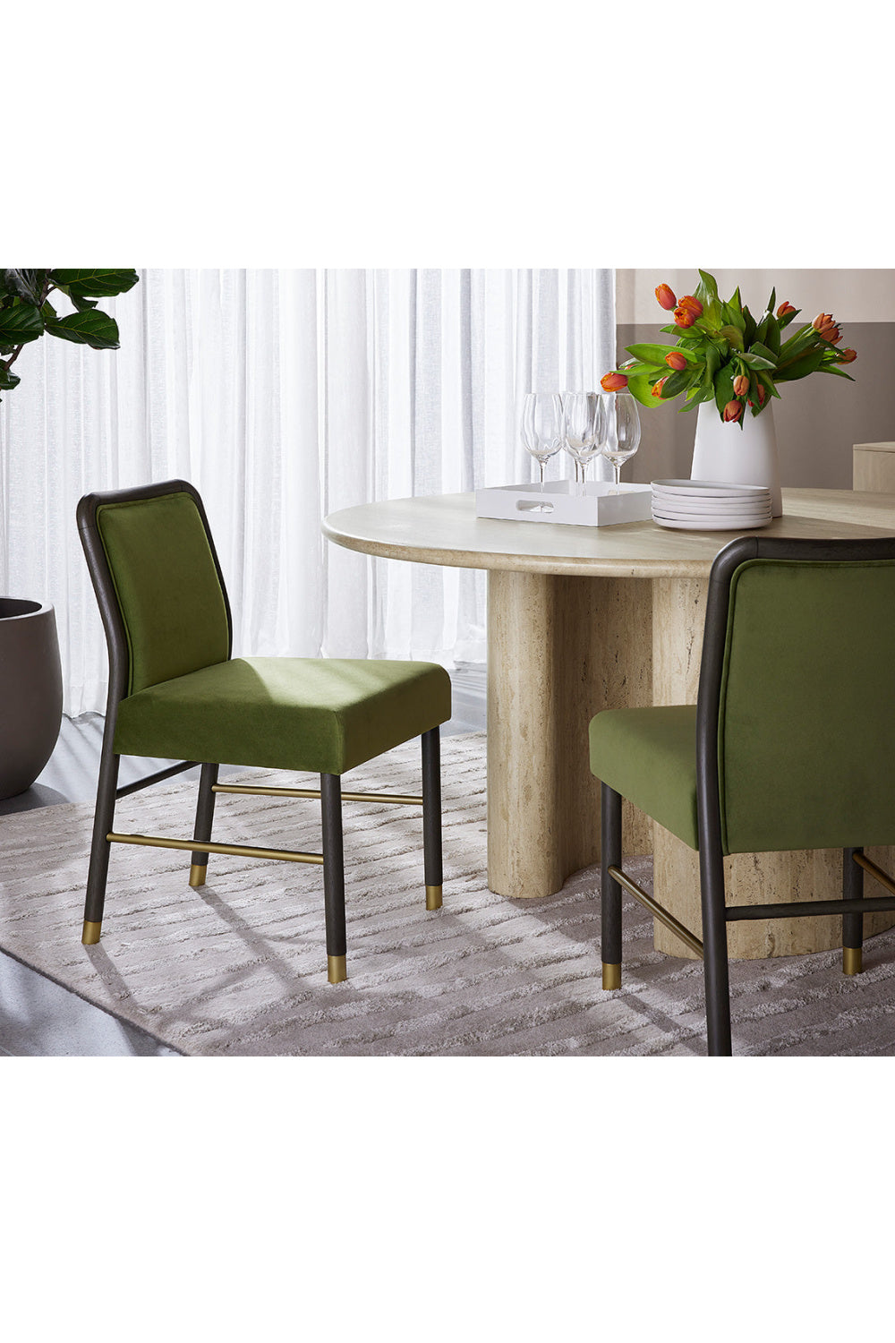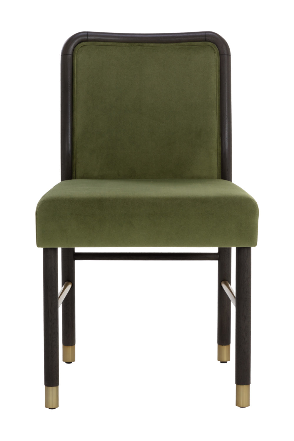 The Jeno Dining Chair is a sophisticated study of mid-century design. A velvet fabric seat in meg olive combined with a smoke grey rubberwood frame gives a striking balance of impeccable style and comfort. Brass metal stretchers and foot caps enhance the overall look.