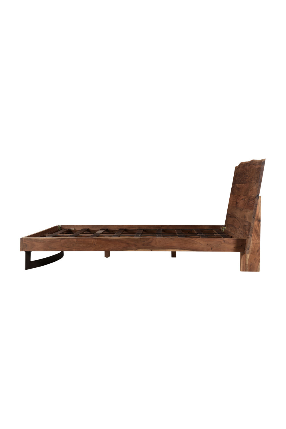 The Bent collection puts nature’s craft front and center. Made of beautiful solid acacia wood, rustic live edge detailing shows off the unique knots and whorls of the wood. An organic element for your bedroom, the Bent bed’s expansive live edge headboard is a showcase for the acacia. A bent iron piece adds an industrial juxtaposition to the natural elements. Pair with other pieces in the Bent collection for a complete look.