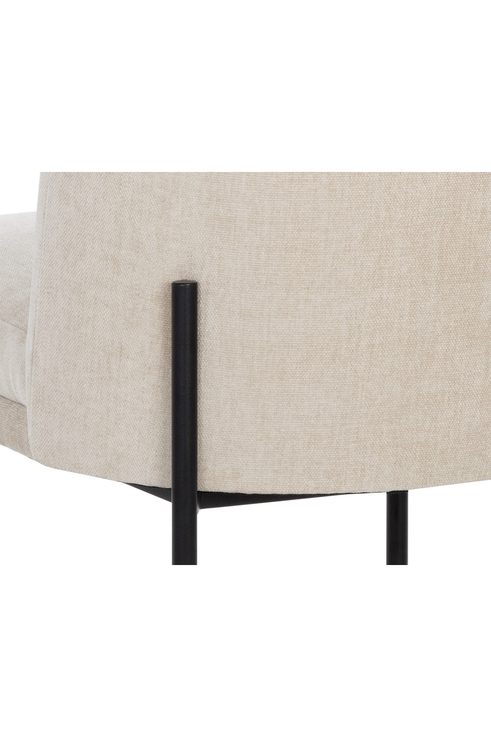 Allow guests to dine in style with this modern dining chair. Designed with a comfortable seat in a softly textured danny ivory fabric with exposed black metal legs or a softly textured forest green fabric with exposed antique brass metal legs.