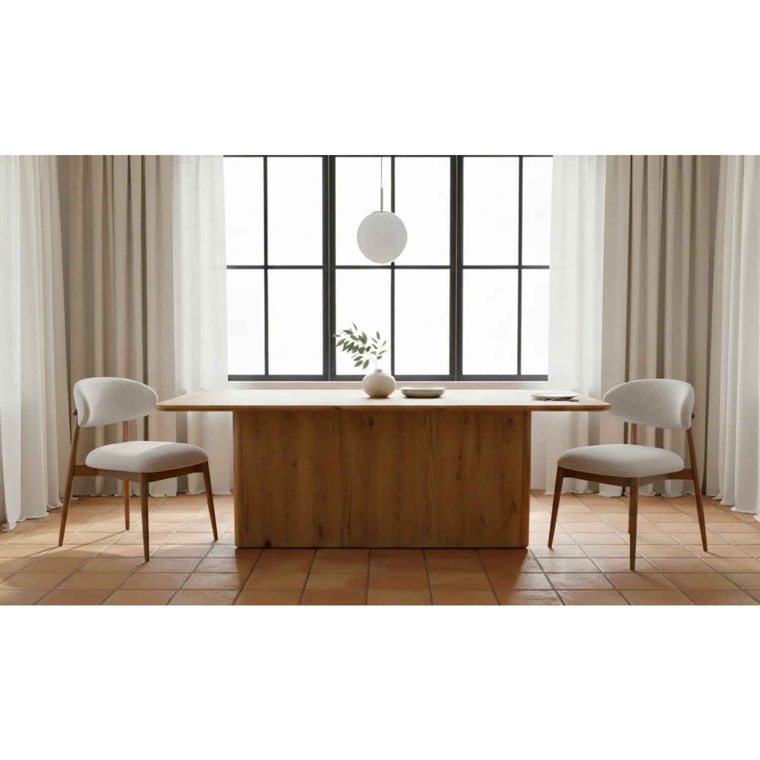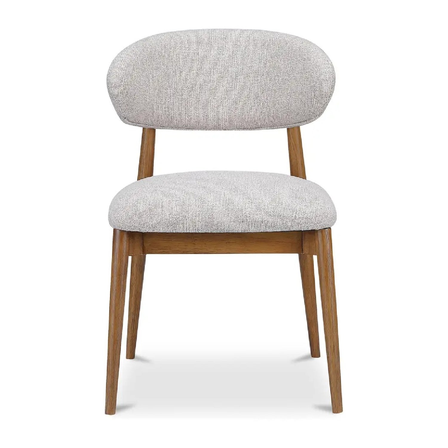 Curves that carry their weight. The Ellie Dining Chair offers just-right comfort with its gently winged backrest and easy-to-clean textured upholstery. A sturdy rubberwood frame gives it grounded warmth, while the oatmeal-tone fabric adds softness to any dining setup. Clean lines and vintage-inspired curves make Ellie an easy fit around the table—or wherever extra seating is needed.
