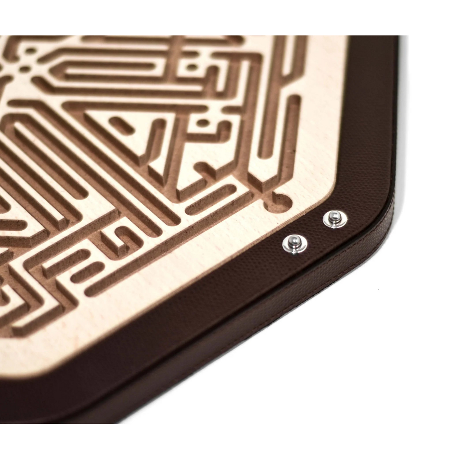 Jinn our octagonal labyrinth is the game designed to test dexterity and skill beautifully crafted in a veneered beech fiber panel covered with the finest leather.