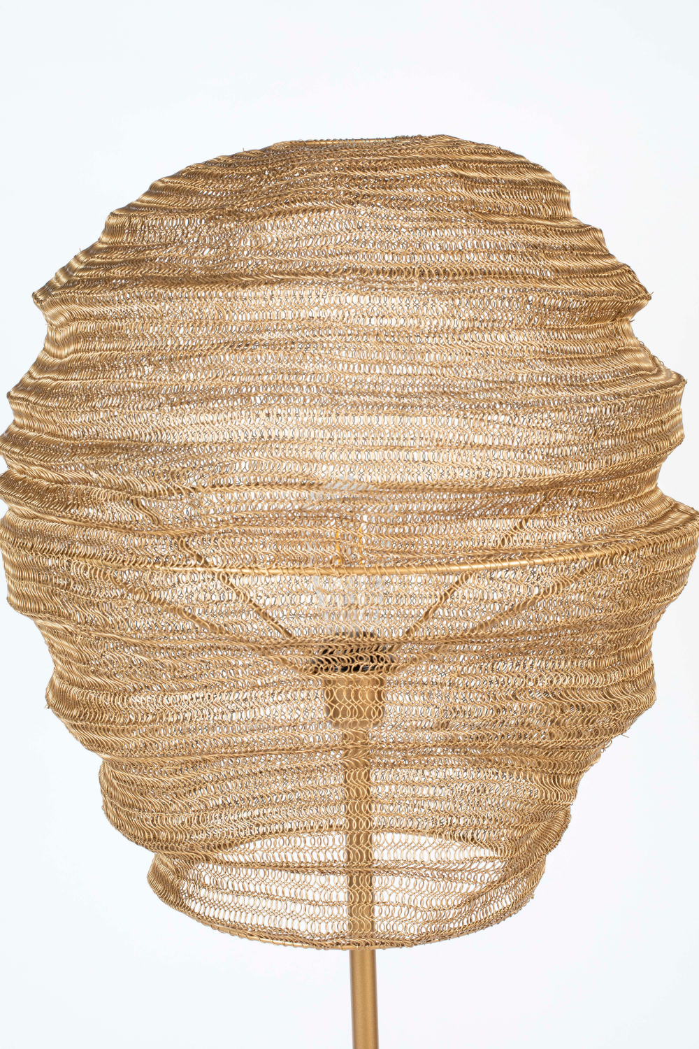 A gorgeous floor lamp made of intricately woven iron in gold finish. Lena by DF presents a unique geometrical canopy casting interesting shadows and silhouette over any space.