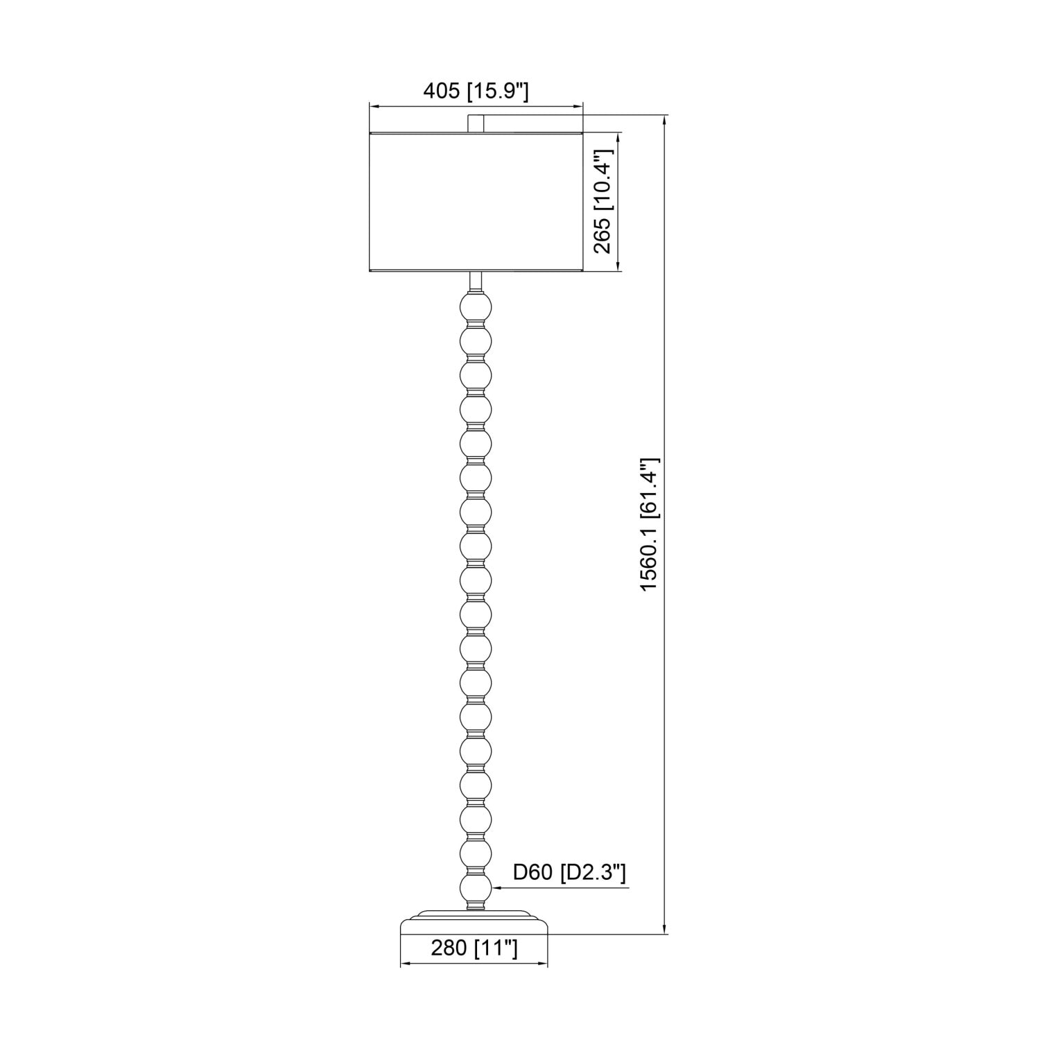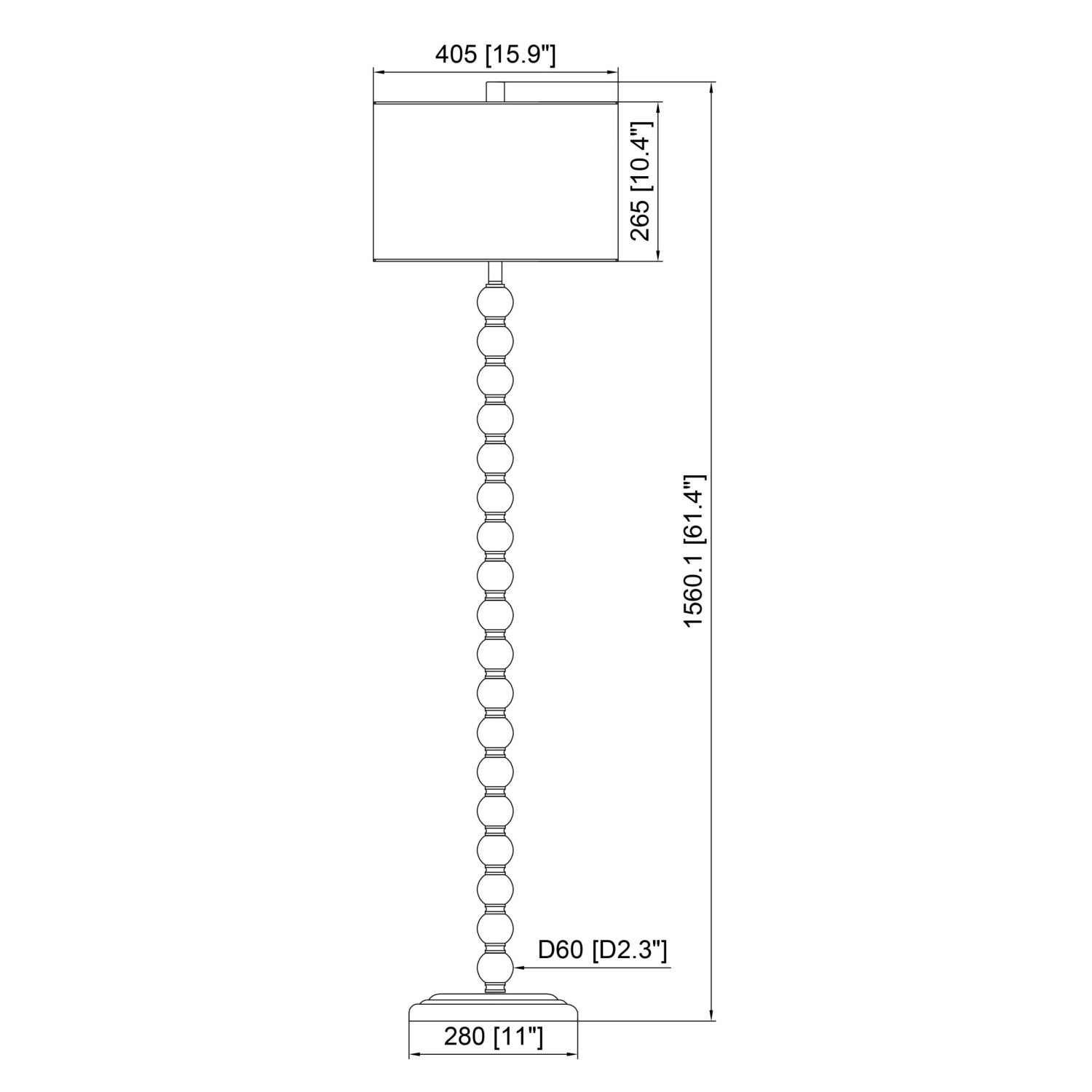 - W16 x D16 x H62 in | Weight 8lbs