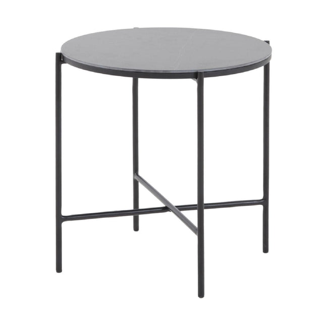 The Hobart End Table is the perfect staple for your modern home. The round black ceramic top is veined with burnt orange accents. Pairing perfectly with the matte black powder coated tubular base, it is sure to match any modern or industrial style home.