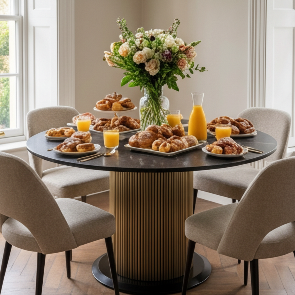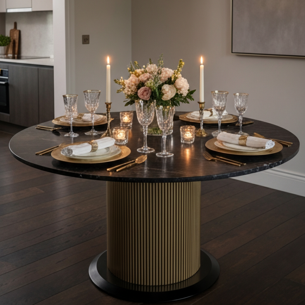 - Is this table suitable for entertaining? Yes, the round 55" top offers generous surface area and encourages easy conversation.