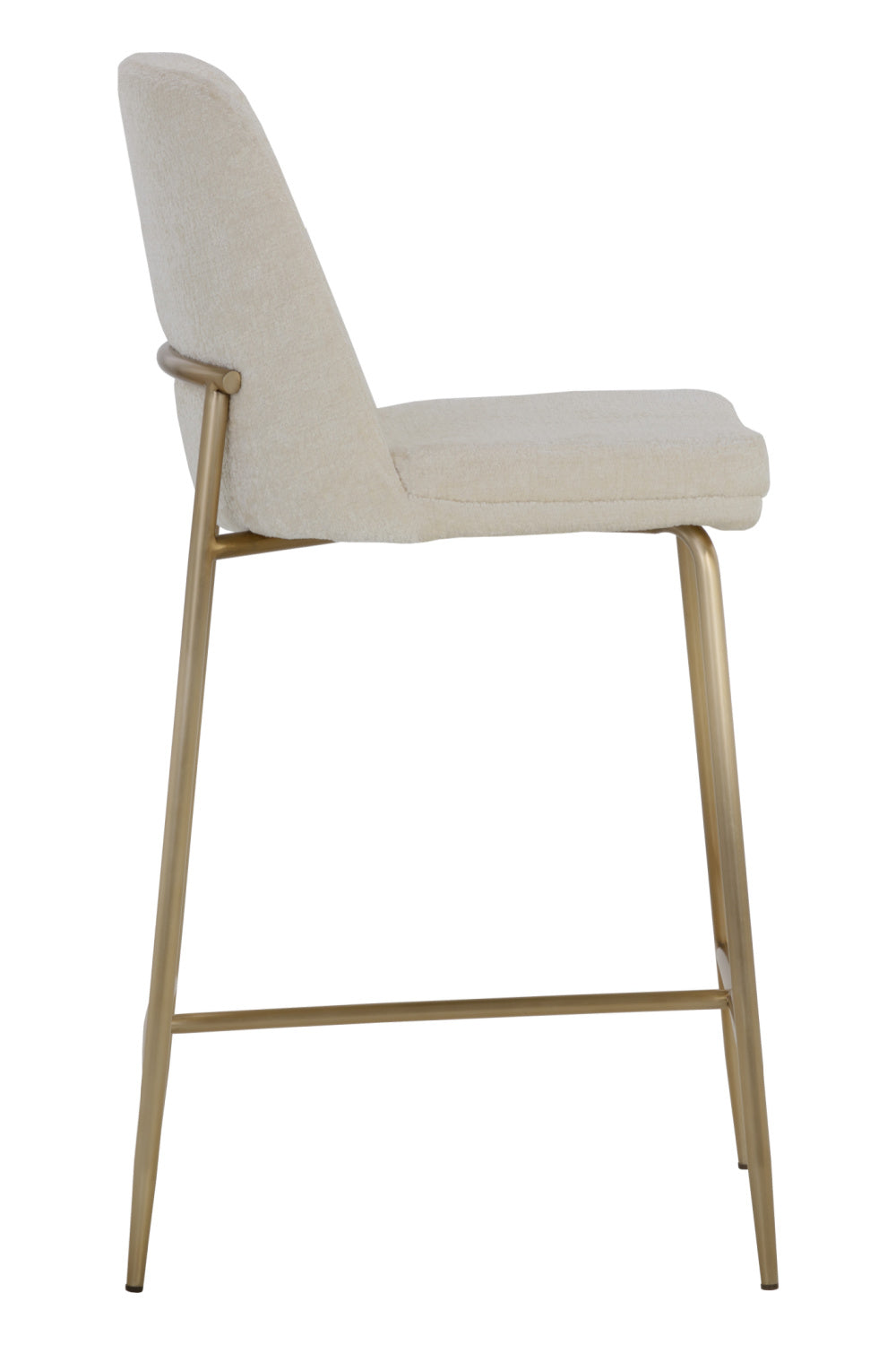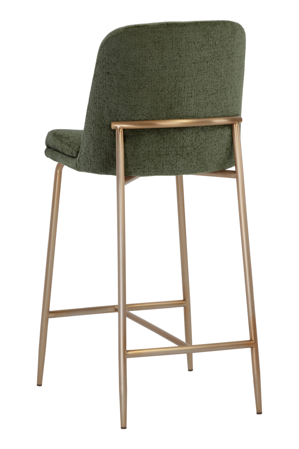 This stylish counter stool features a classic silhouette that provides comfortable seating in any modern living space. Features an antique brass stainless steel frame and a curved backrest upholstered in fabric.