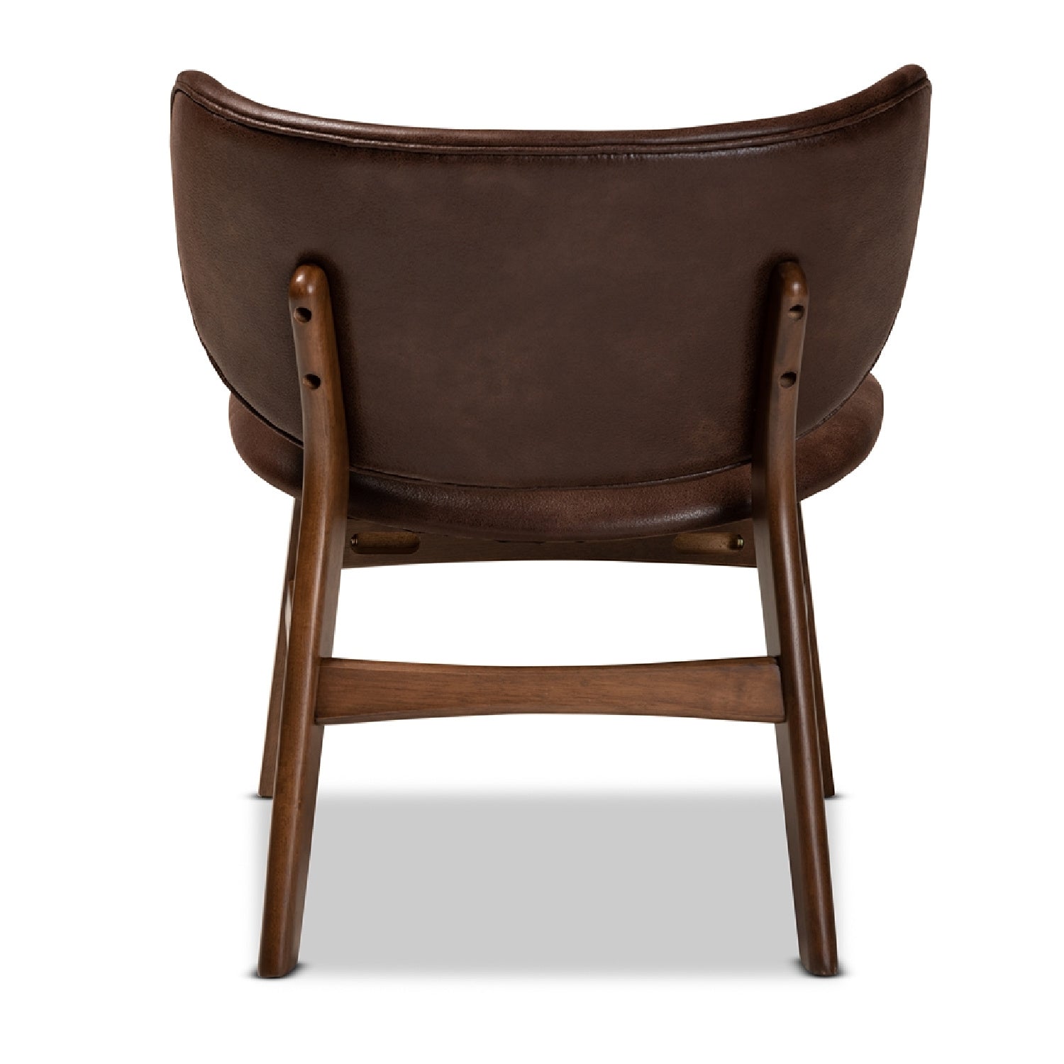 Add a mid-century touch to your interior with the expressive design of the Marcos accent chair. This chair is constructed from walnut brown finished wood that exudes visual warmth. Its curved backrest and seat are padded with plush foam and upholstered in sleek faux leather effect fabric for superb comfort in any public or private space. Requiring assembly, the Marcos utilizes angled legs for stable support. With smooth curves and a visually stunning silhouette, the Marcos accent chair expertly blends style and comfort.