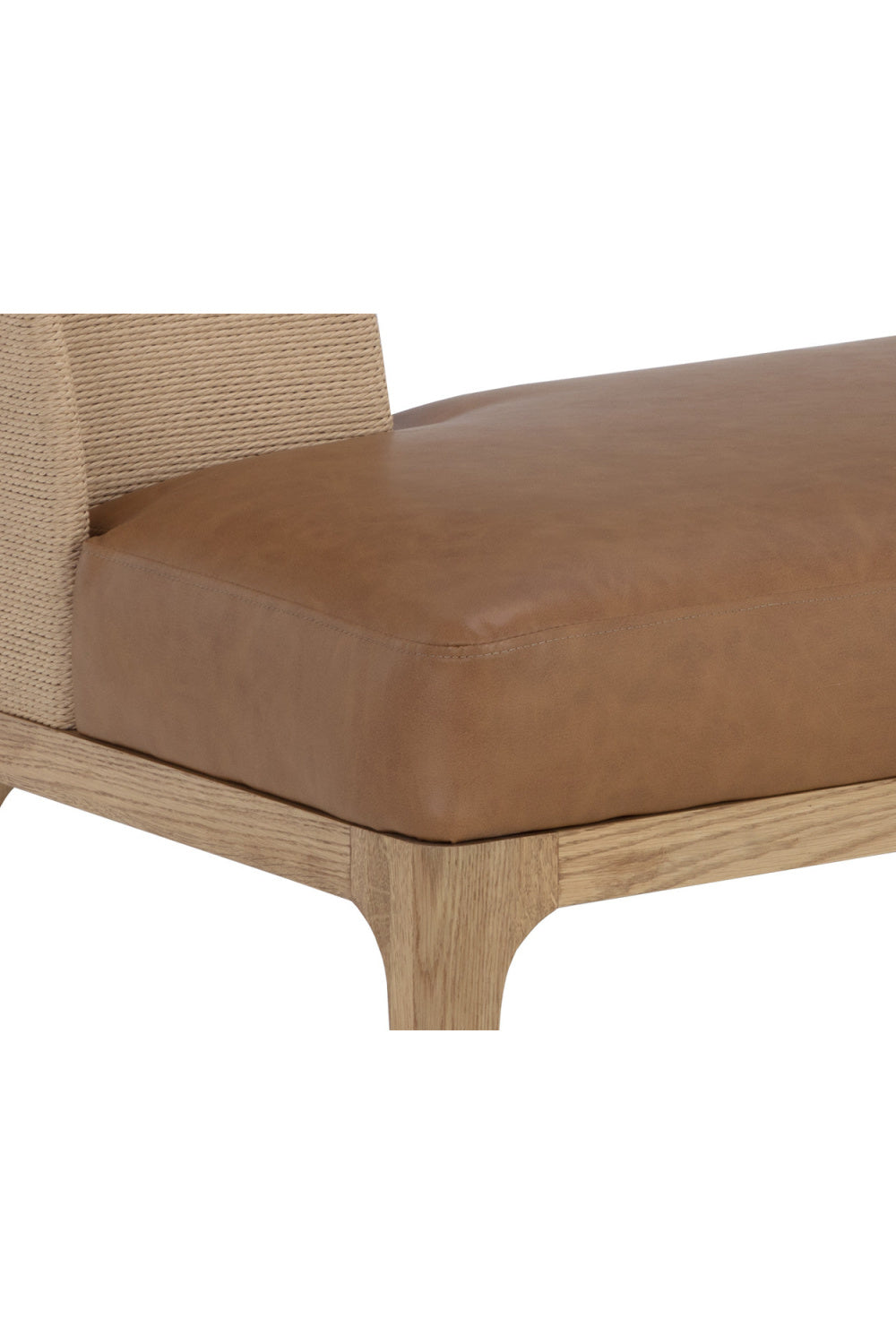 The Brocco Banquette is a study of mixed materials and textures. The oak wood frame beautifully complements the paper rope weaving on the backrest. With comfortable seating upholstered in our millken cognac faux leather, this banquette will go well in any space. Handle With Care: This design has been crafted with faux leather. Faux leather is manufactured to reflect the natural characteristics of leather; as such, color variations, markings, wrinkles, grooves, and light scratches are appreciated characteristics. No two pieces will be alike. Visit our Product Care page for more information on how to ensure the lasting beauty of this piece.