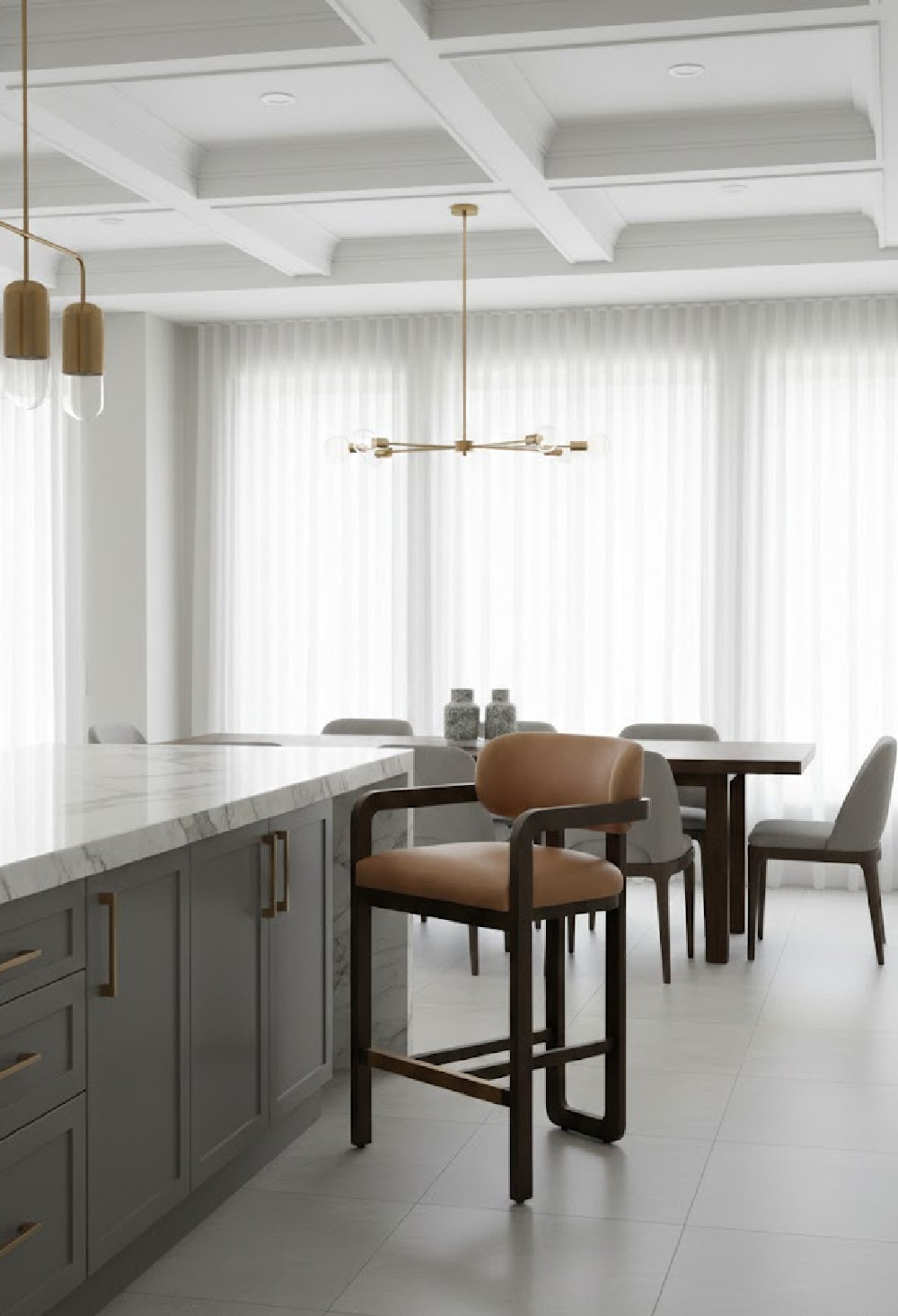 The eye-catching silhouette of the Madrone Counter Stool will stun from all angles. The curved lines of the three-legged brown oak wood frame lend a statuesque presence to any room. The low back seat is upholstered in ludlow sesame leather for luxurious comfort.