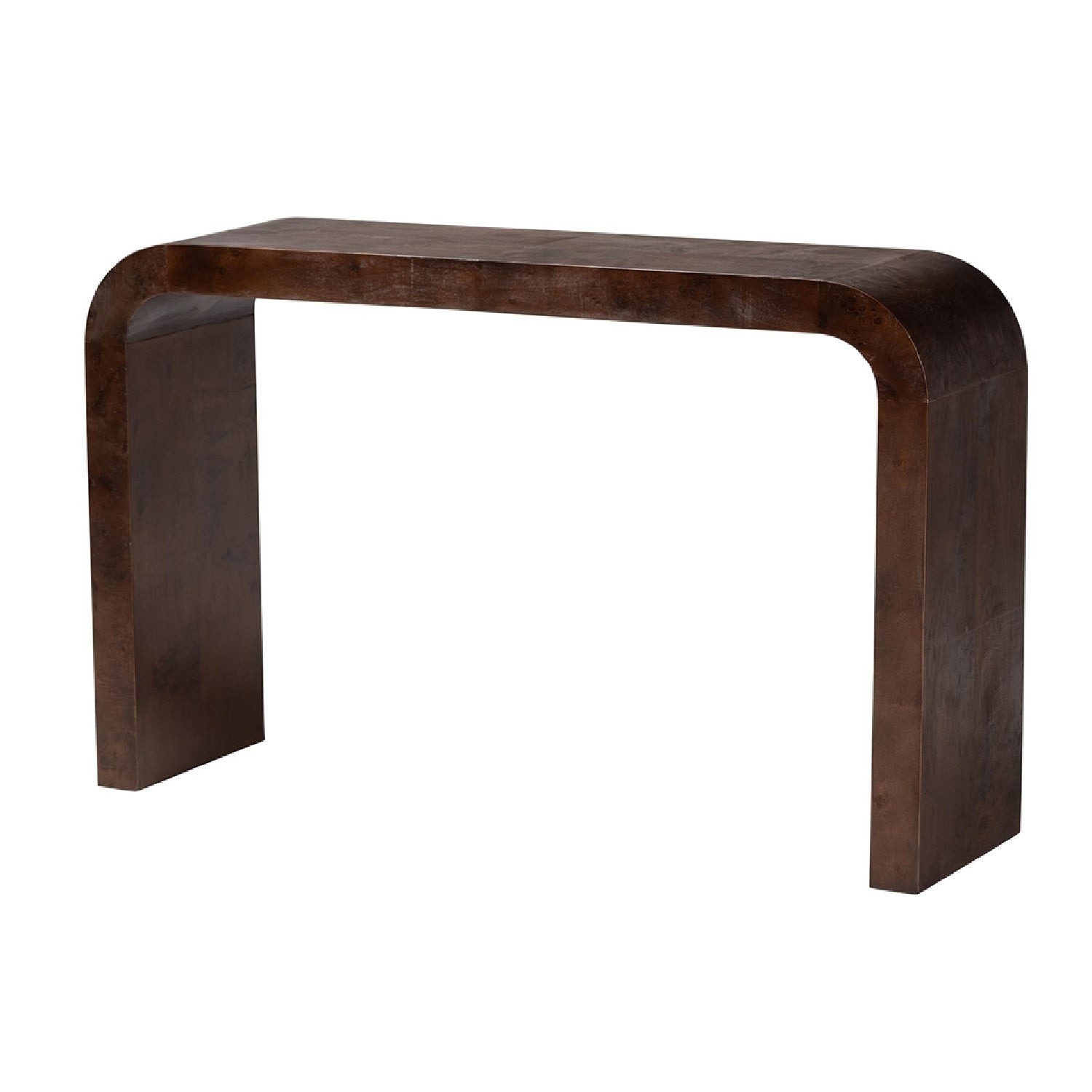 Burl Wood Waterfall Console Table | Bali Loom Revelle is backordered and will ship as soon as it is back in stock.