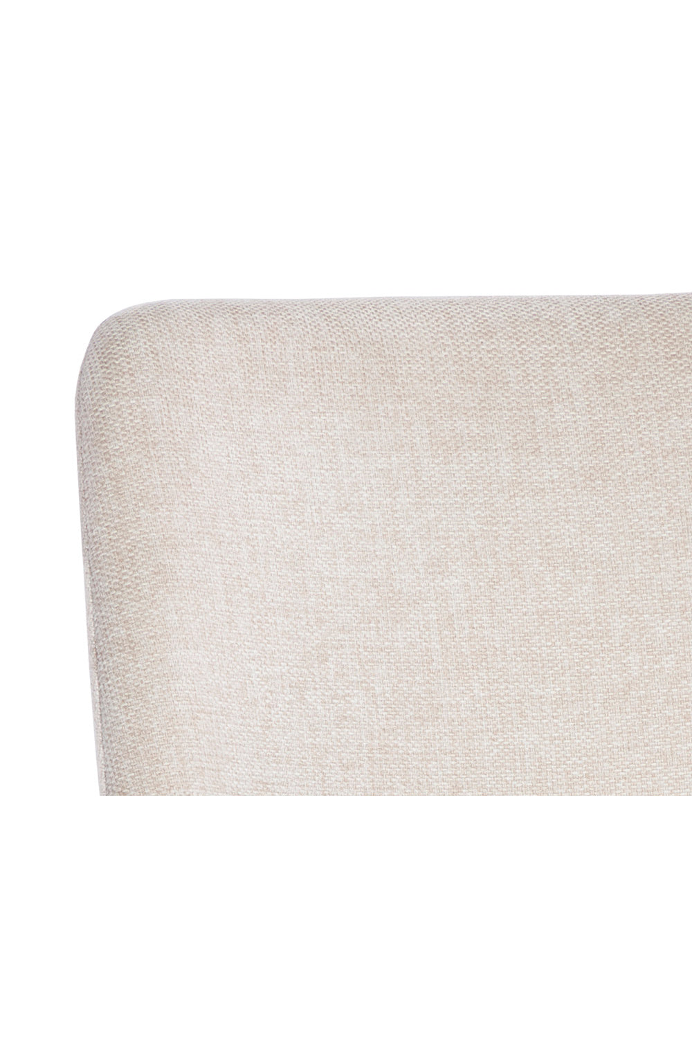 Make a bold statement with this modern dining chair that is full of luxe details. Stocked in belfast oatmeal fabric with accenting on the back in bravo cognac leather. Finished with brushed steel legs in antique brass.
